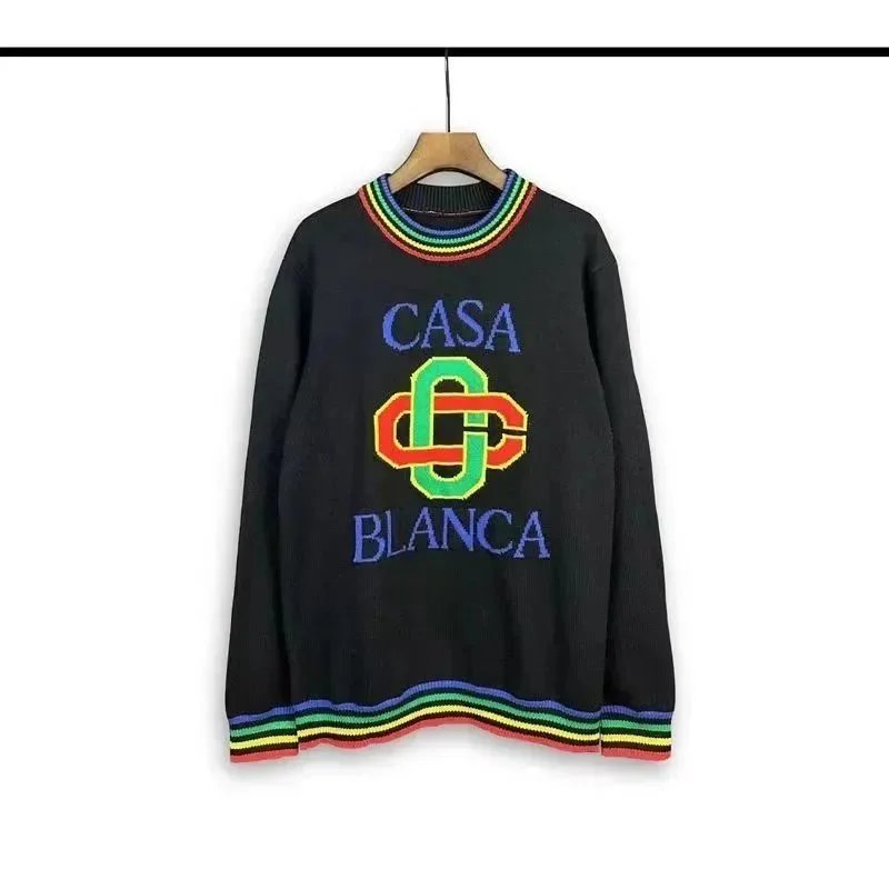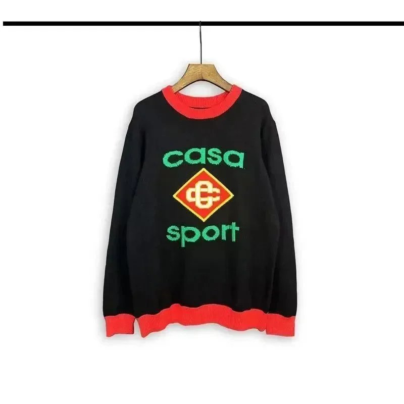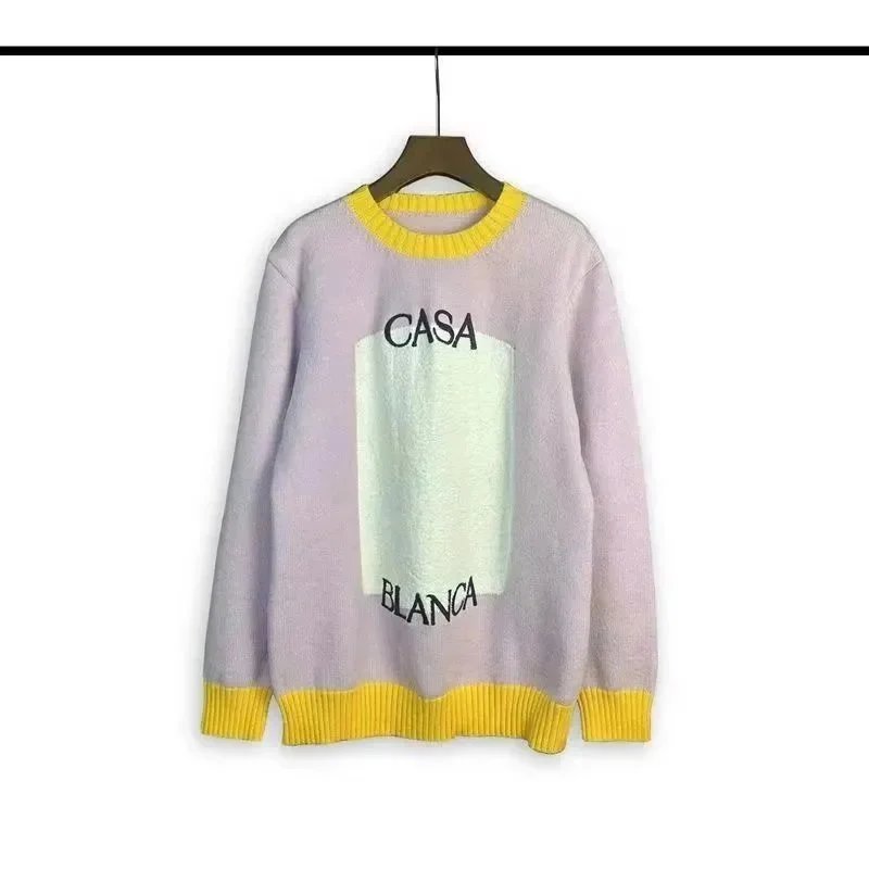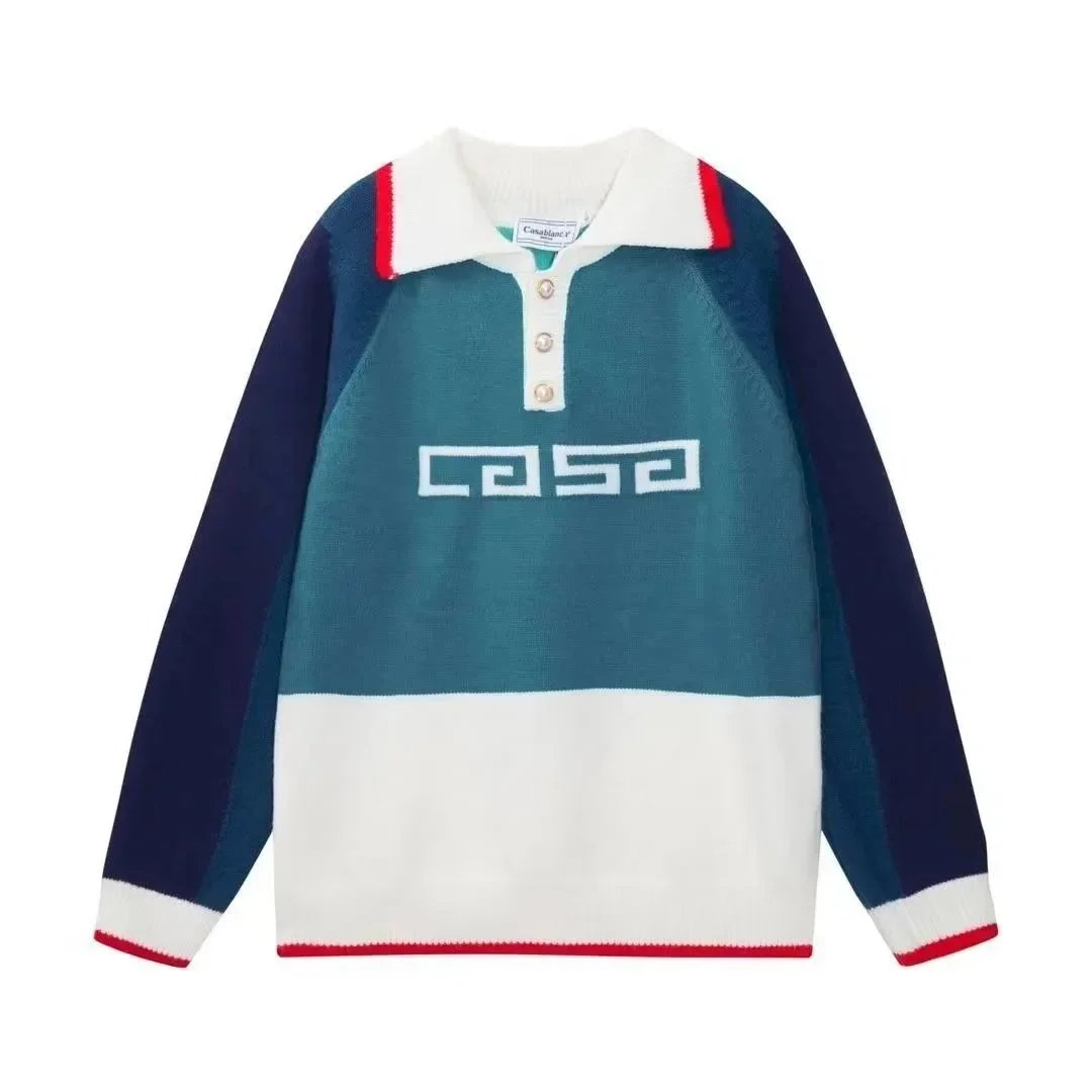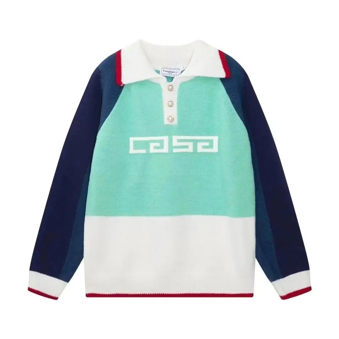 Stylish Casa Blanca and Casa Sport logo knit sweaters in vibrant colors and retro designs, perfect for casual everyday wear.