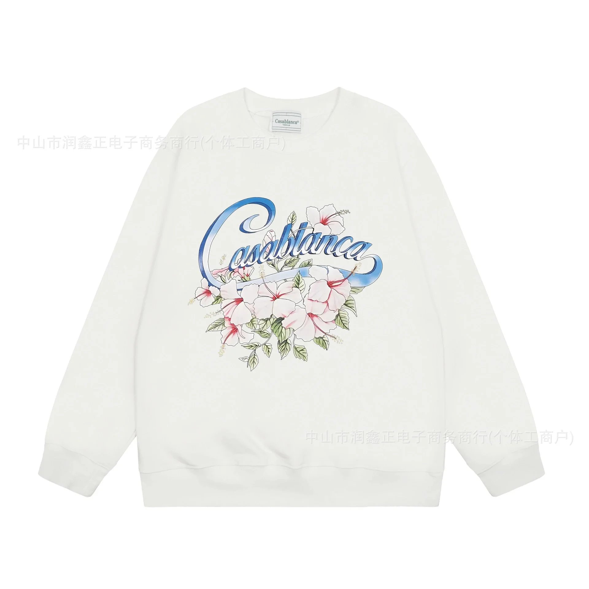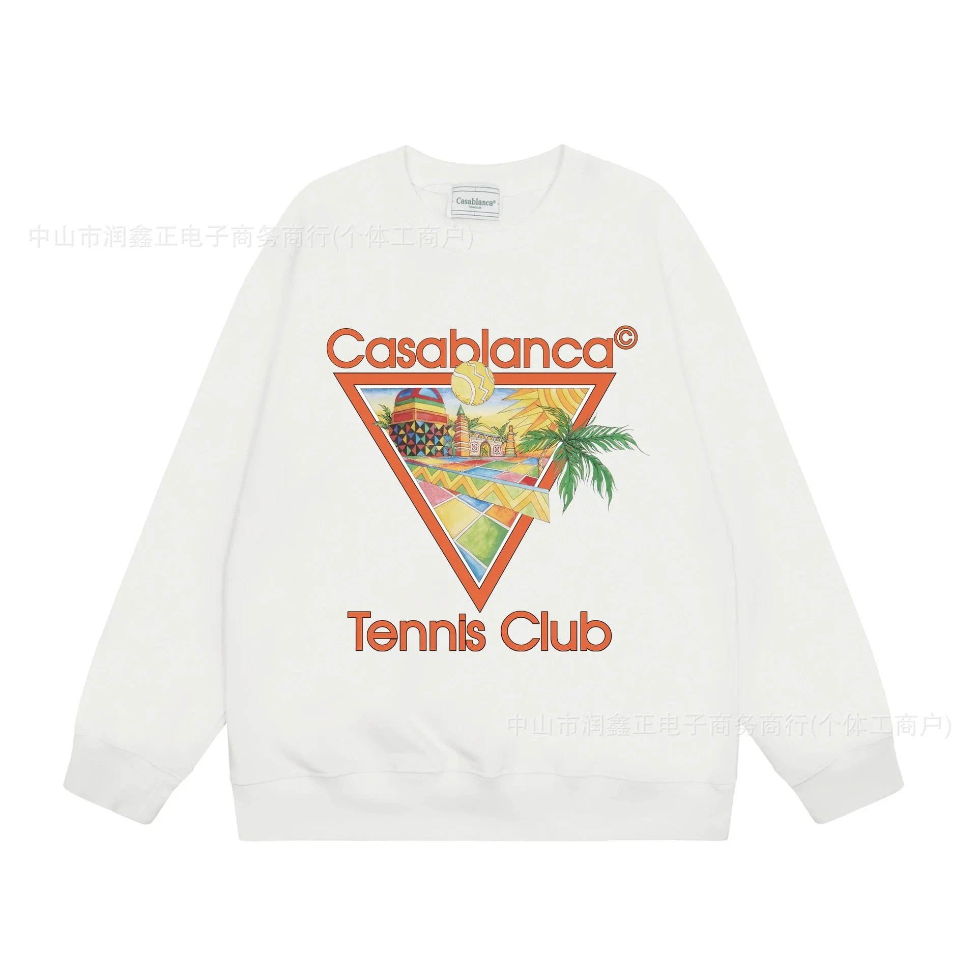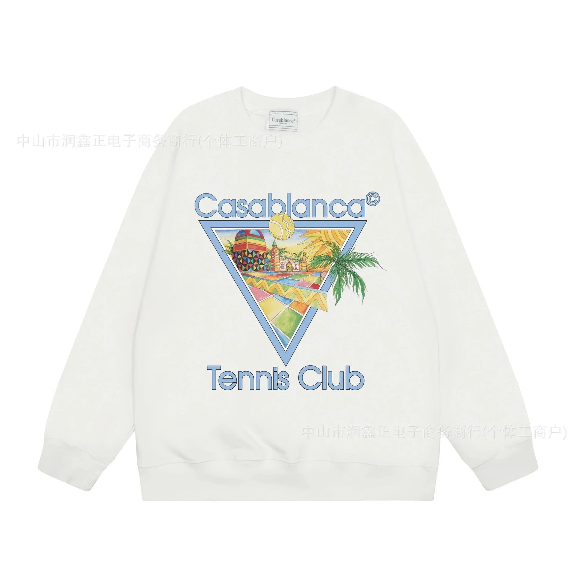Stylish Casa Tennis Club sweatshirt featuring a vibrant floral and racket print. Available in classic white and black for a bold, sporty-chic look.