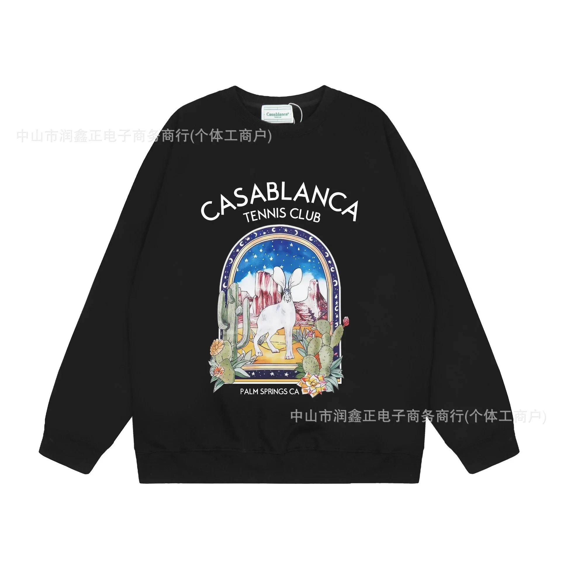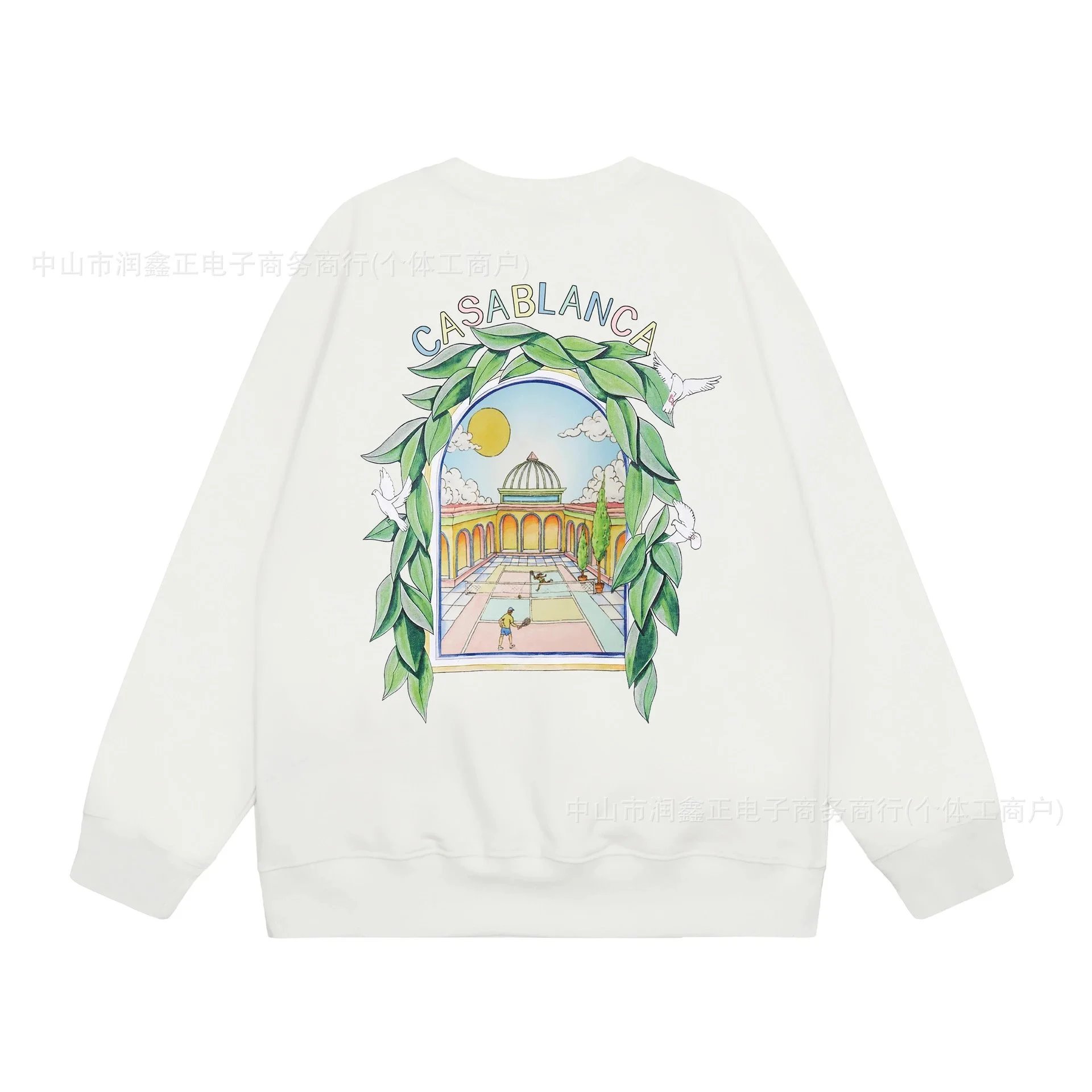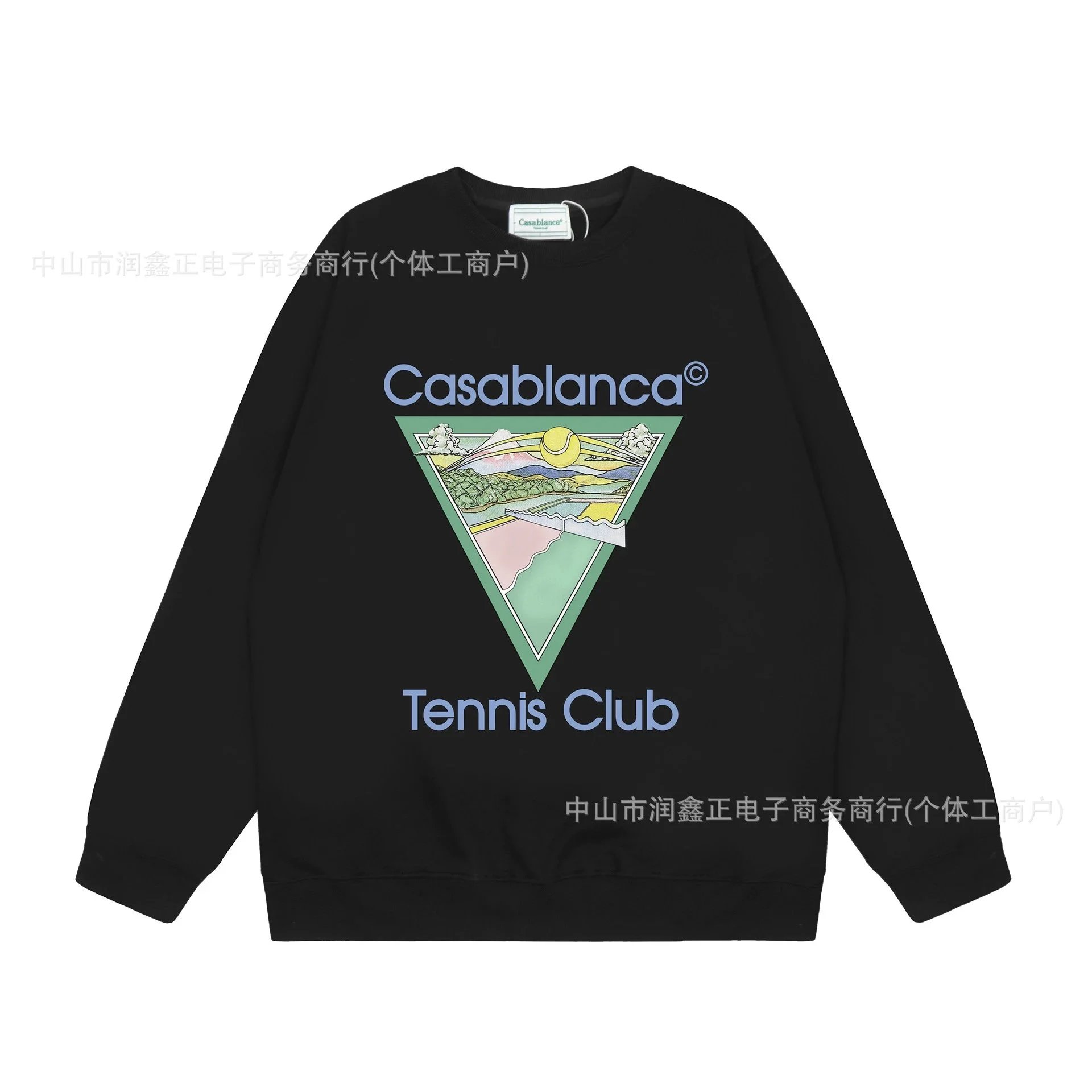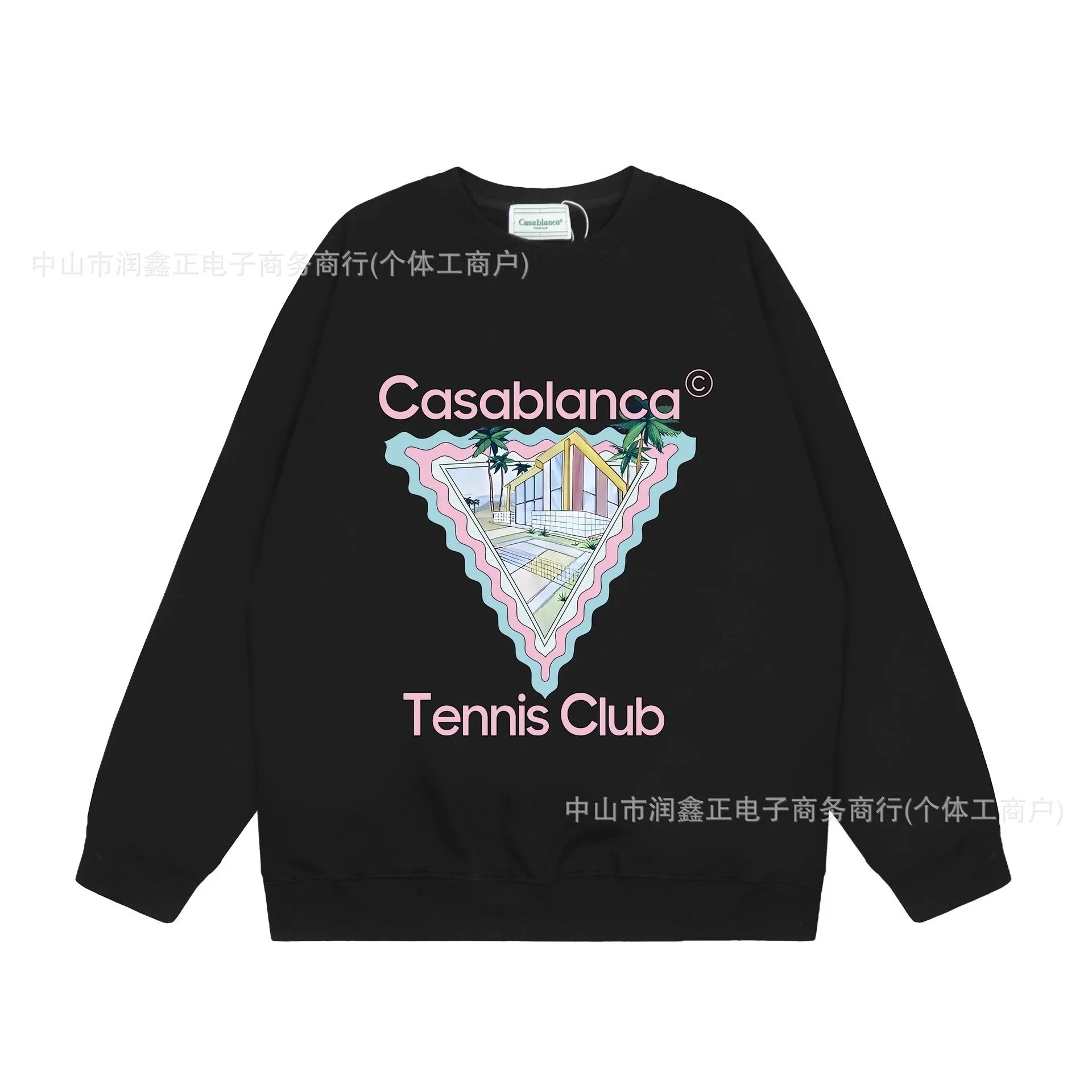 Stylish Casa Tennis Club sweatshirt featuring a vibrant floral and racket print. Available in classic white and black for a bold, sporty-chic look.