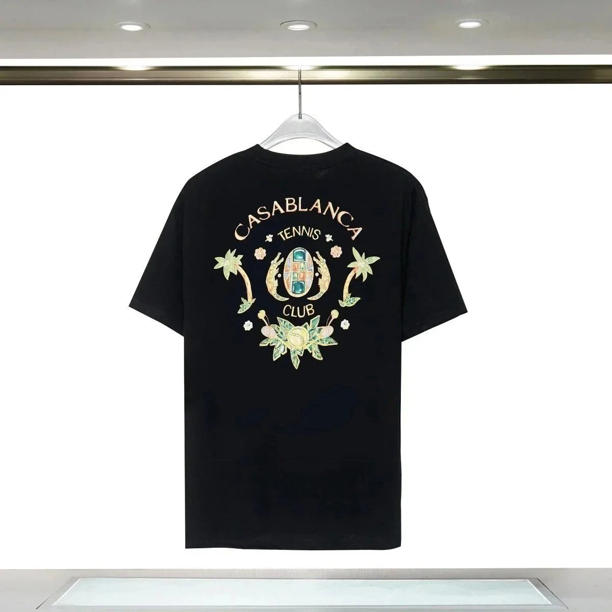 Discover the Casablanca Tennis Club collection featuring vibrant, artistically designed T-shirts with iconic motifs like flowers, arches, and tennis imagery. Perfect for fashion-forward wearers seeking unique style.
