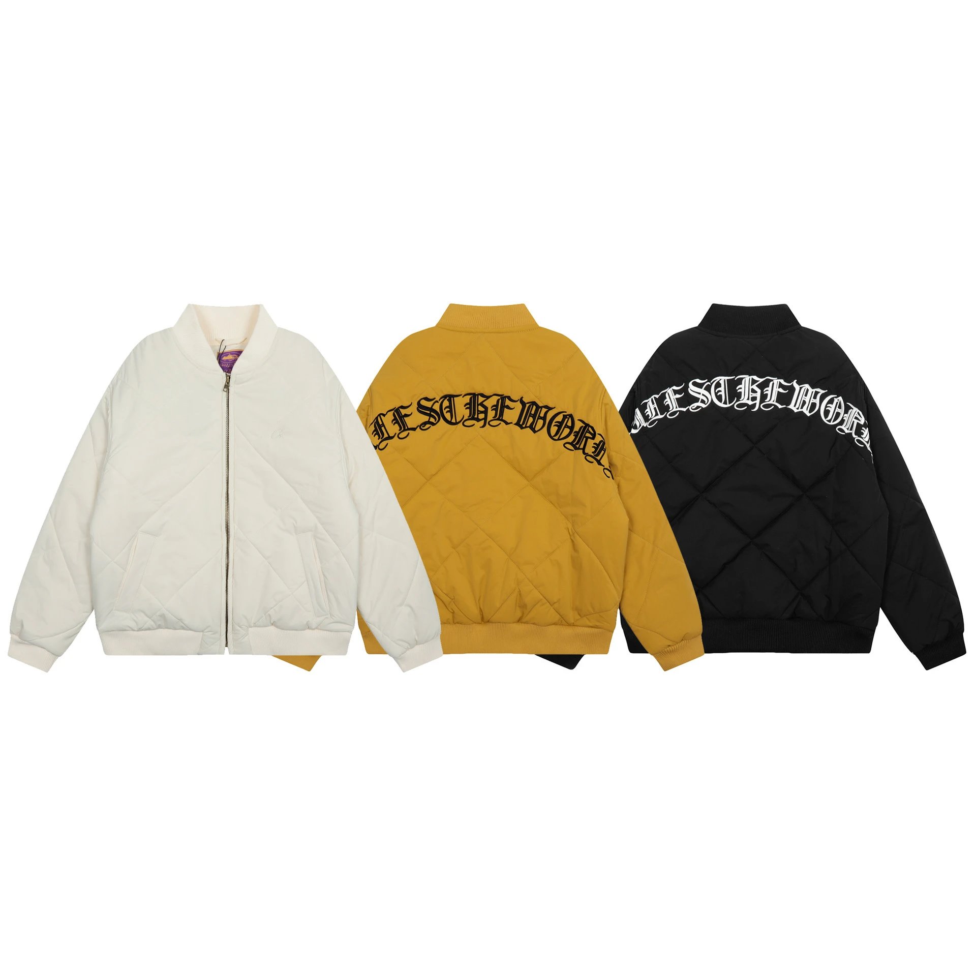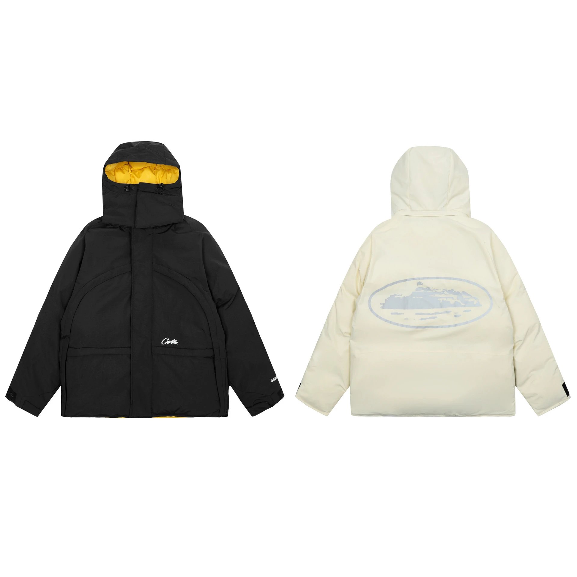 Explore the Champion outerwear collection featuring a premium black leather bomber jacket, insulated puffer jackets, and color-block vests. Perfect for cold weather style and comfort.