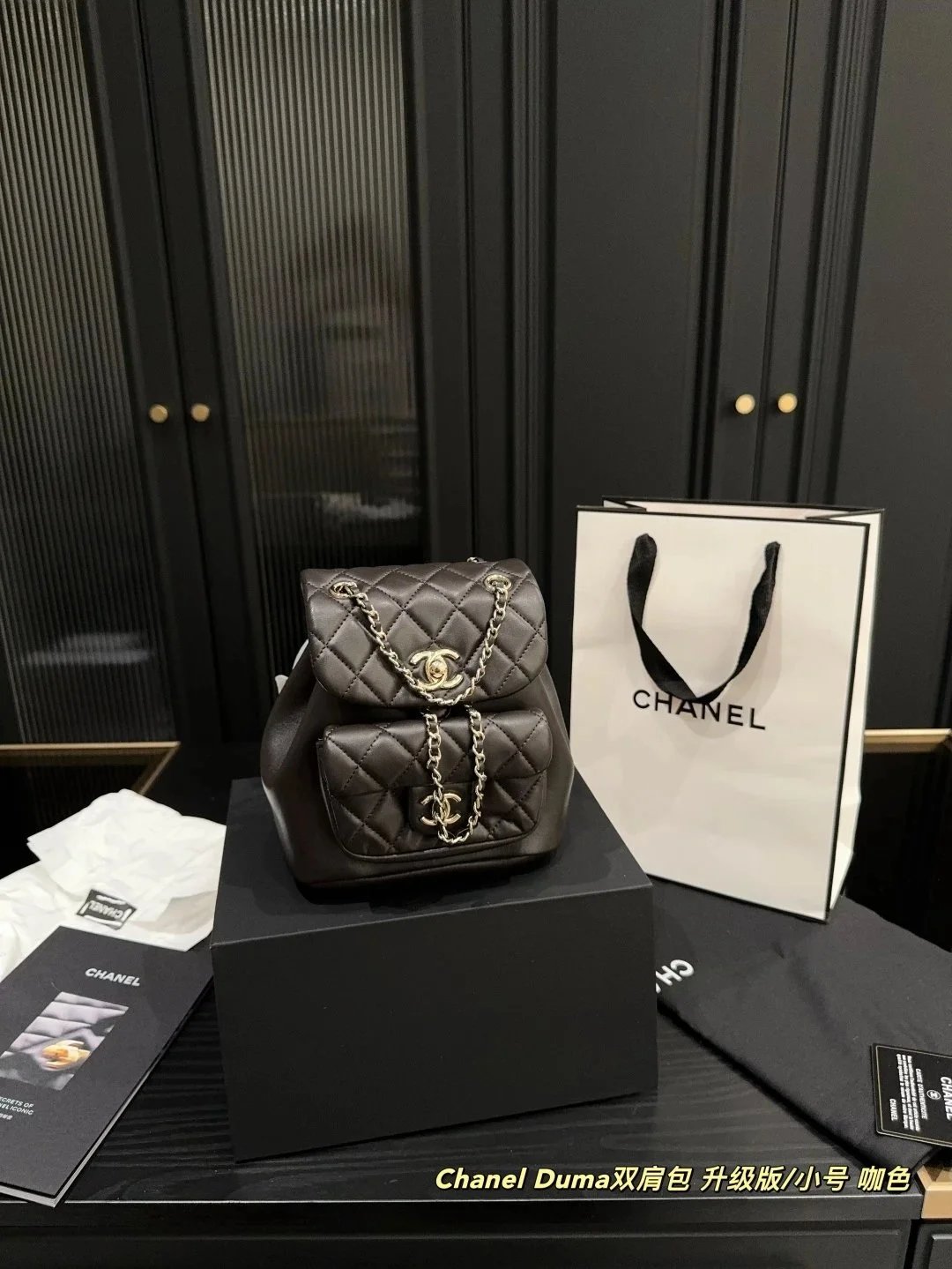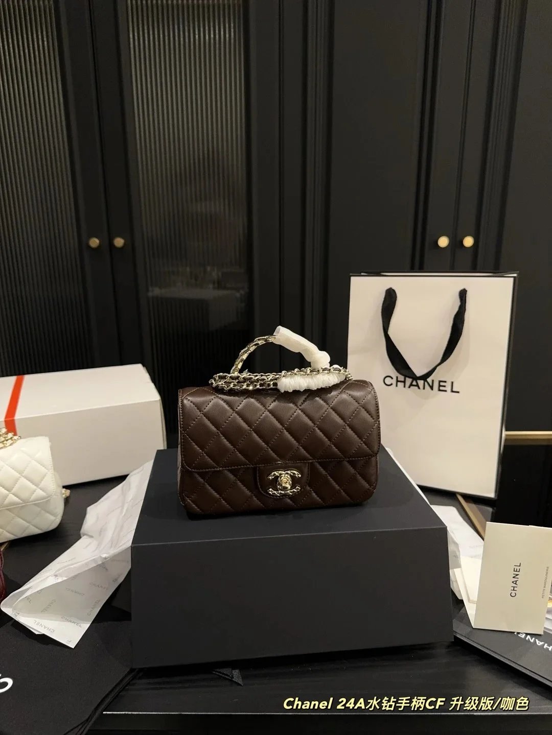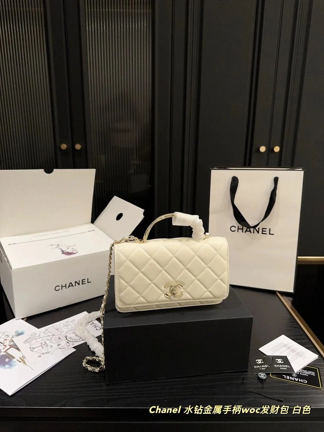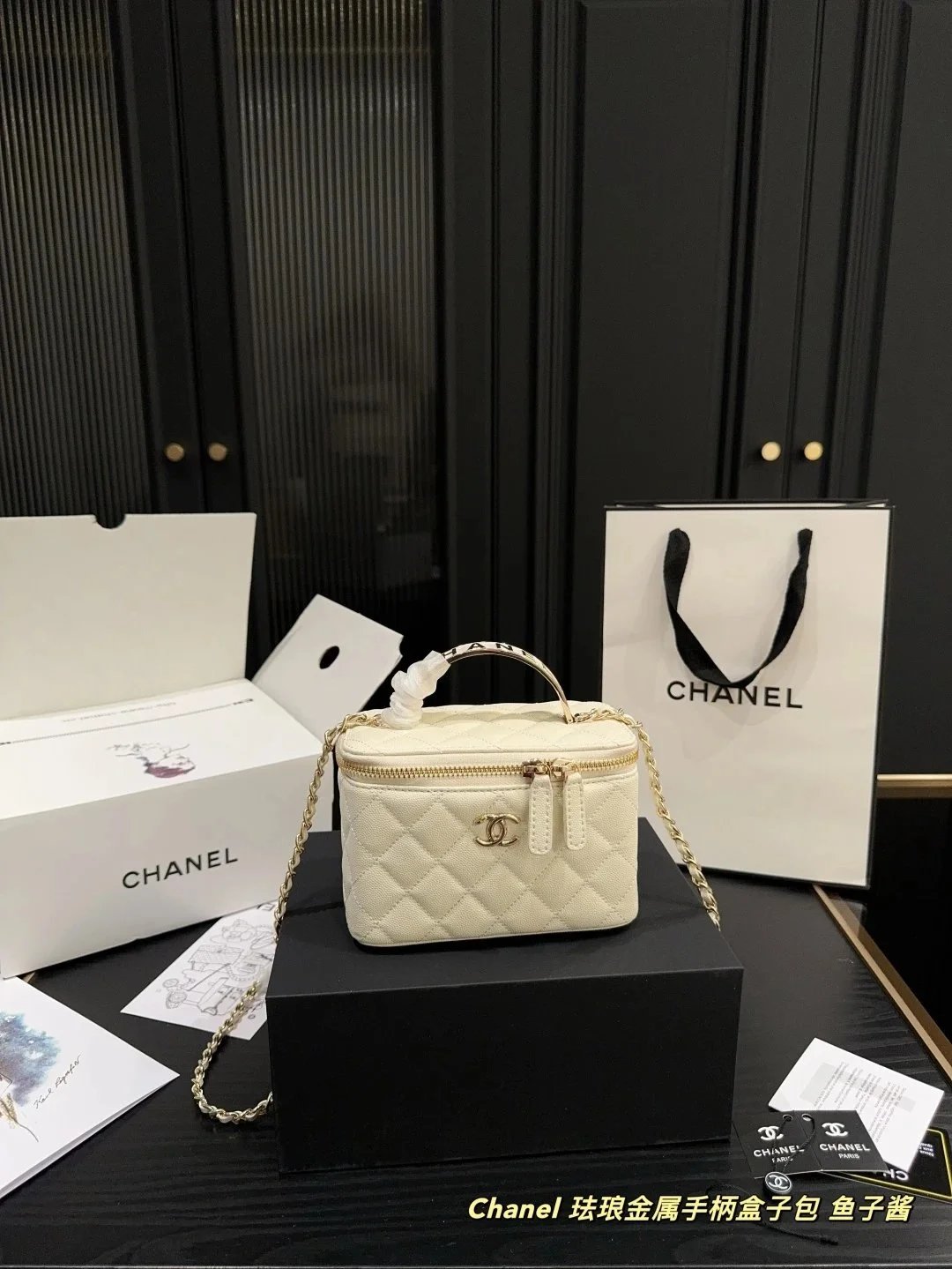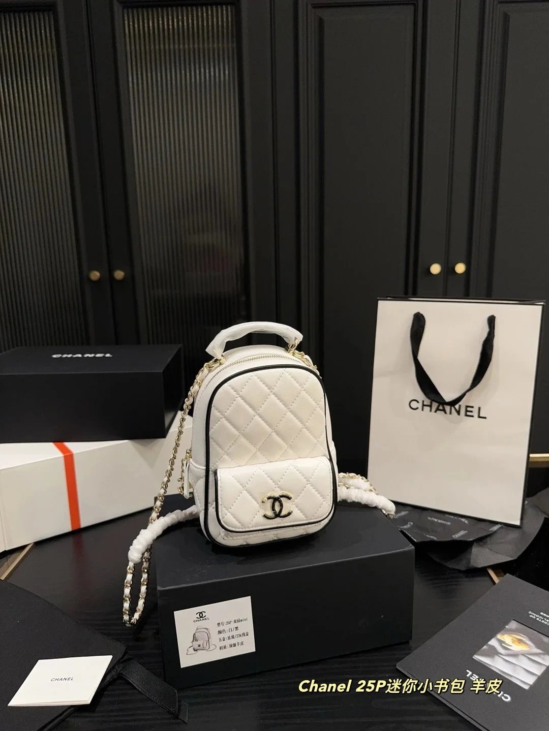 Elegant Chanel 25P Kelly handbag in creamy beige quilted leather with gold-tone hardware and chain strap. Displayed with authentic packaging for a premium luxury experience.