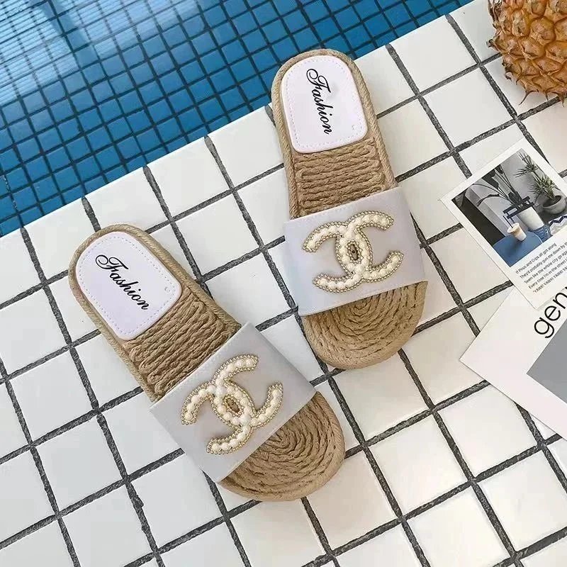 Step into summer comfort with these stylish slide sandals featuring a signature double-C logo and durable rope-woven soles. Perfect for casual outings or poolside lounging.