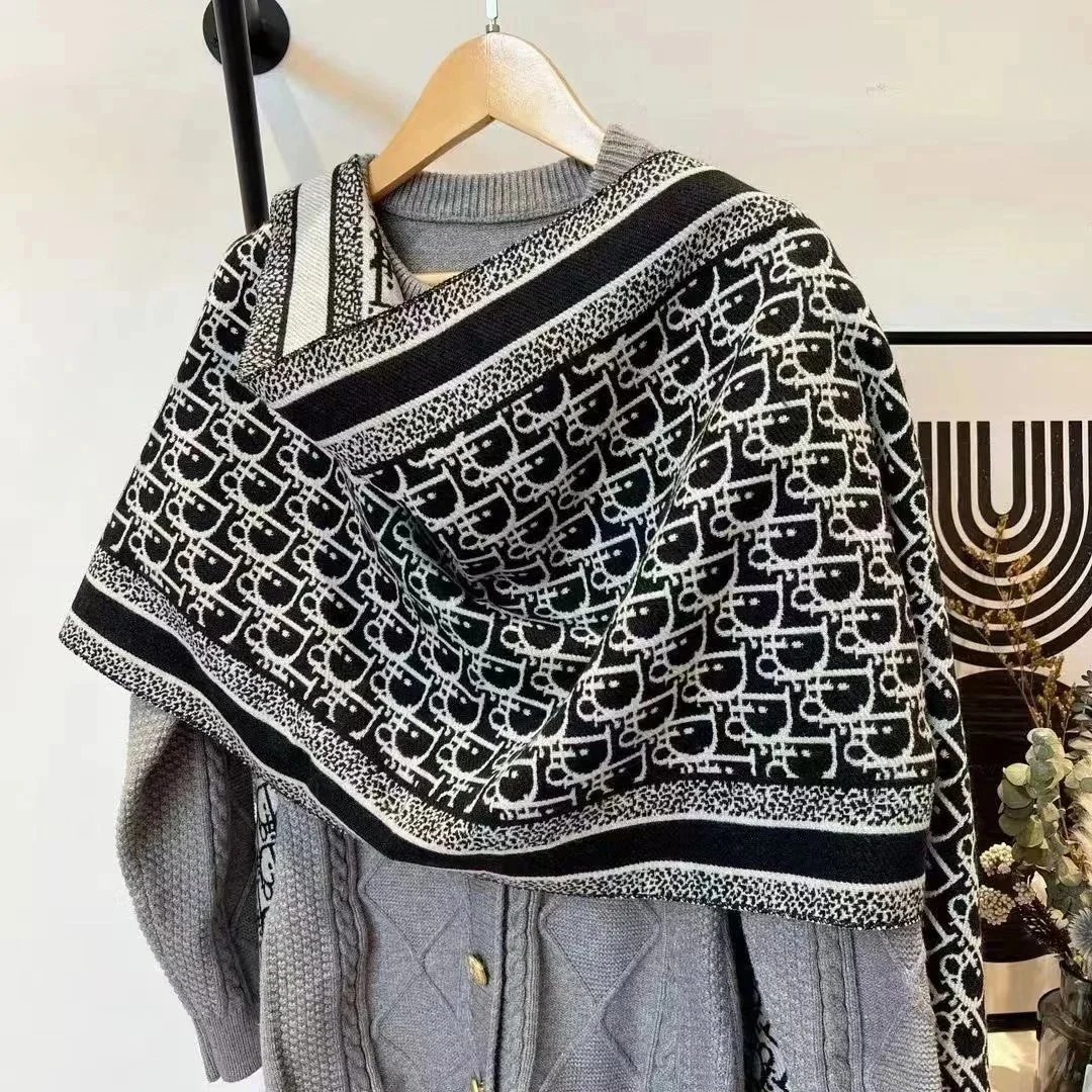Elevate your style with this luxurious Christian Dior oblique print scarf in navy blue. Featuring iconic monogram patterns and elegant fringes, it's the perfect accessory for a sophisticated look.