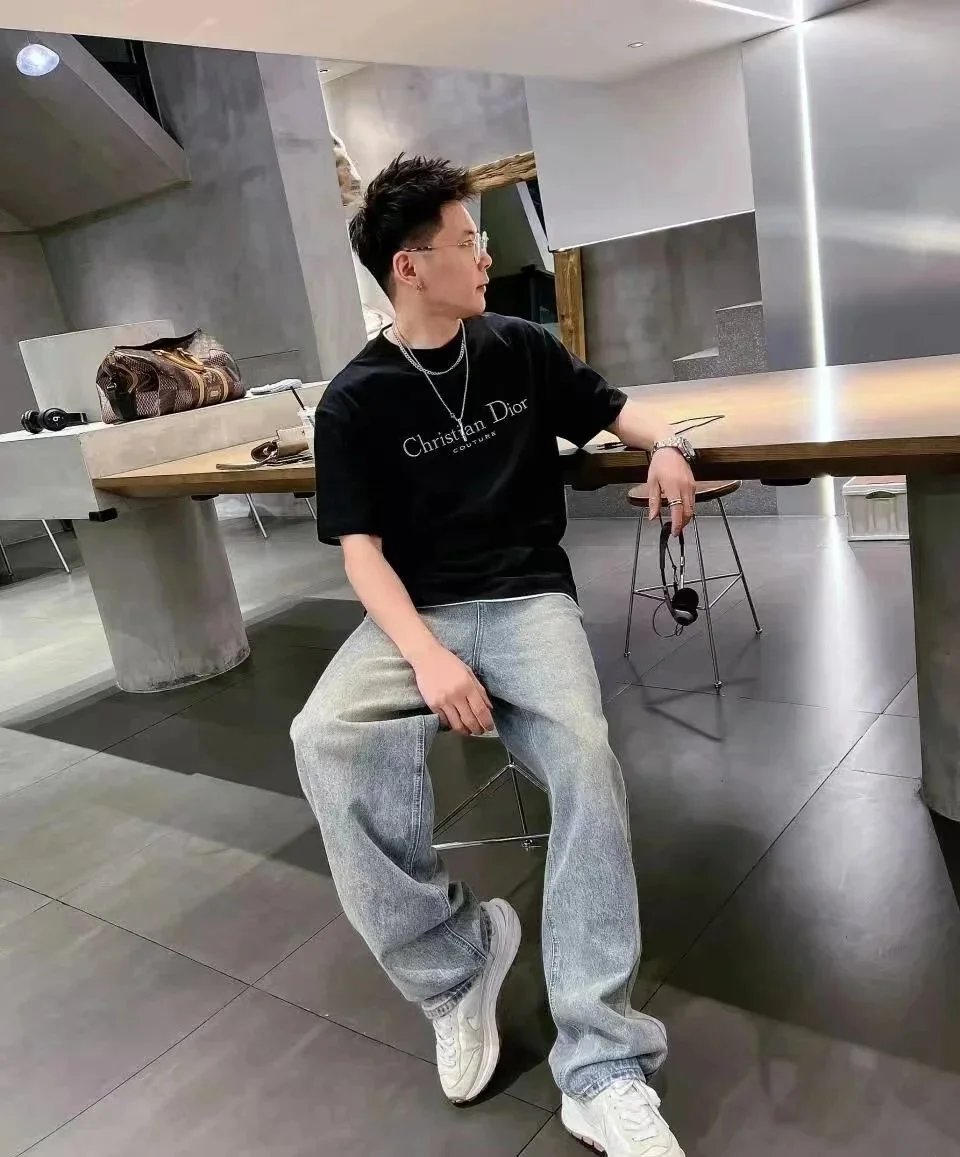Explore the Christian Dior t-shirt collection featuring bold logo graphics, floral wreaths, and textured lettering in white and black. Ideal for high-end casual wear.