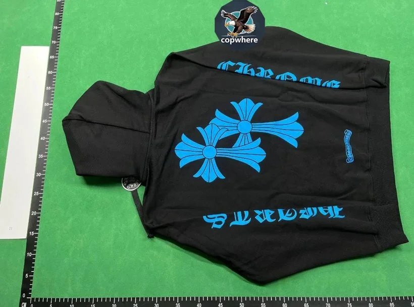 Luxury Chrome Hearts black hoodie featuring bold white floral graphics and iconic circular logo. Perfect for high-end streetwear lovers.