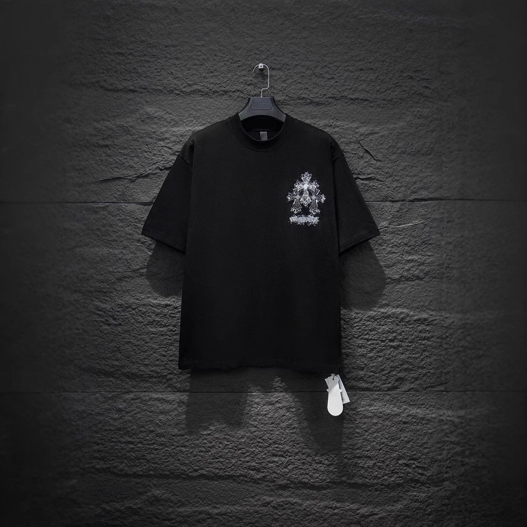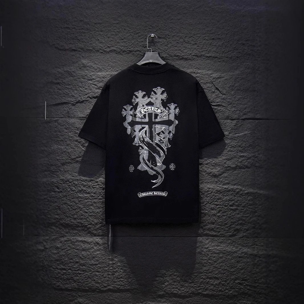 Discover Chrome Hearts' signature cross-themed t-shirts in black and white, featuring bold graphics and iconic branding for a high-end streetwear look. Perfect for collectors and fashion-forward wearers.