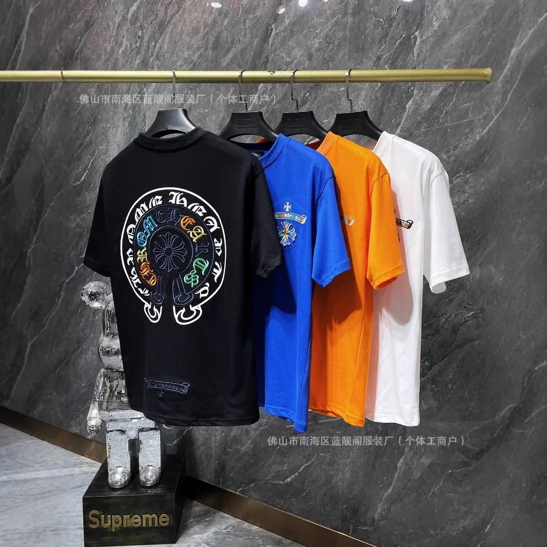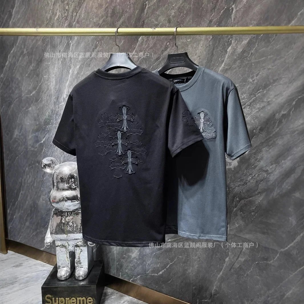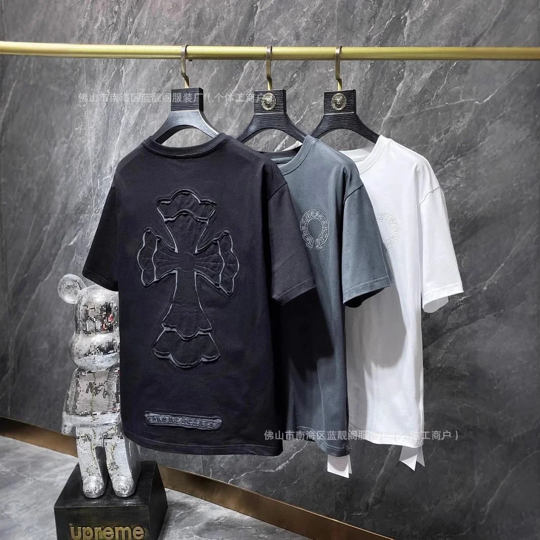 High-end Chrome Hearts t-shirts featuring iconic cross logos in black and white, with embroidery and printed designs for a bold streetwear look. Ideal for collectors and fashion-forward buyers.