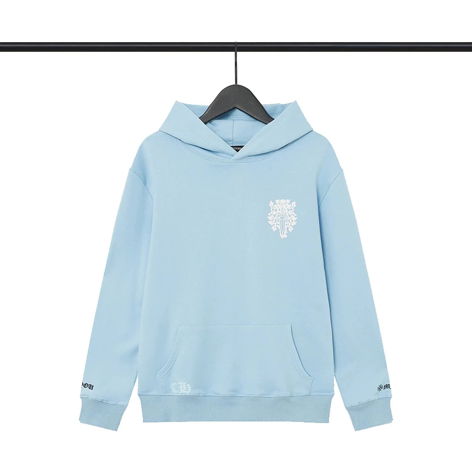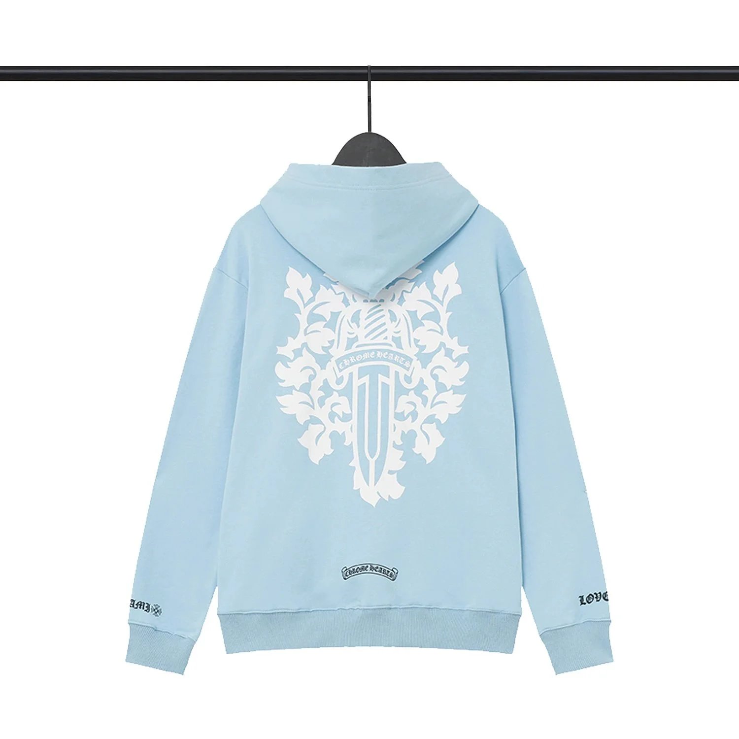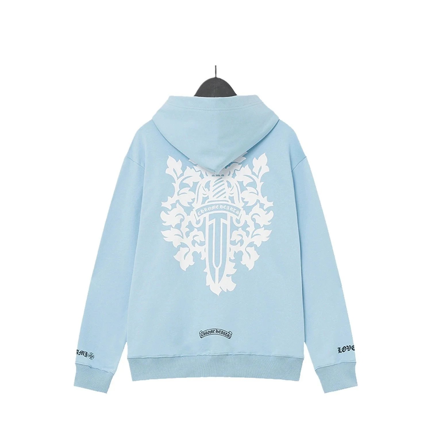Luxury Chrome Hearts hoodies featuring iconic cross graphics in black and white. Premium streetwear for bold fashion statements.