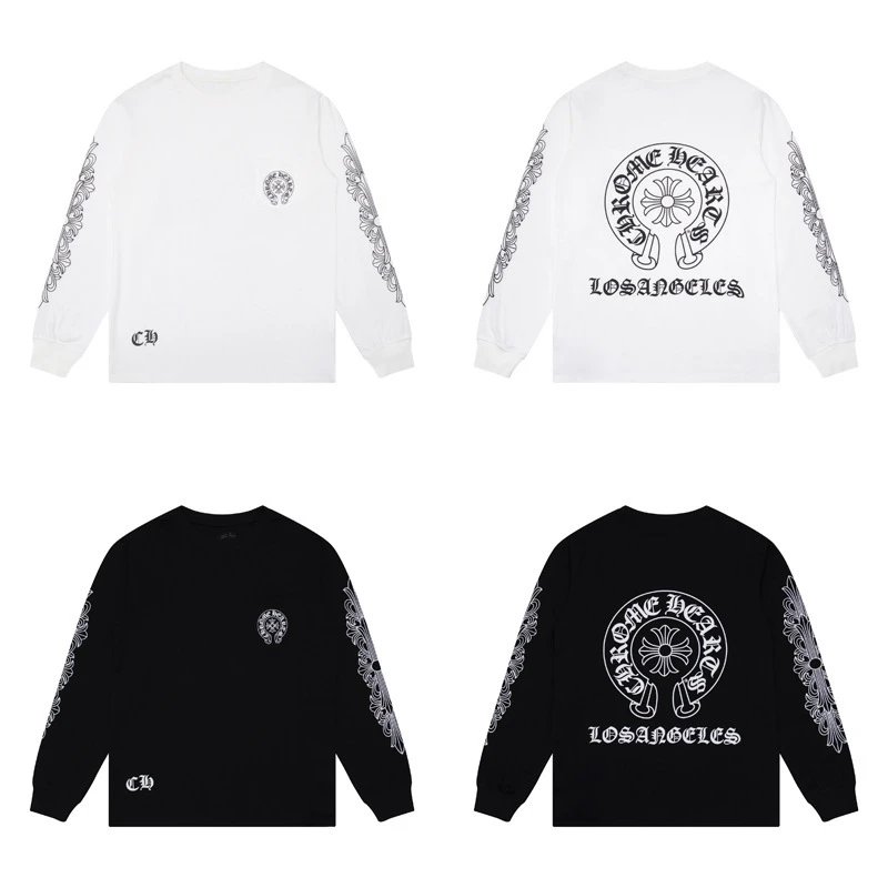 Discover the Chrome Hearts long sleeve collection featuring bold graphic prints, color-blocked raglan sleeves, and signature logo designs. Each piece combines luxury branding with streetwear edge.