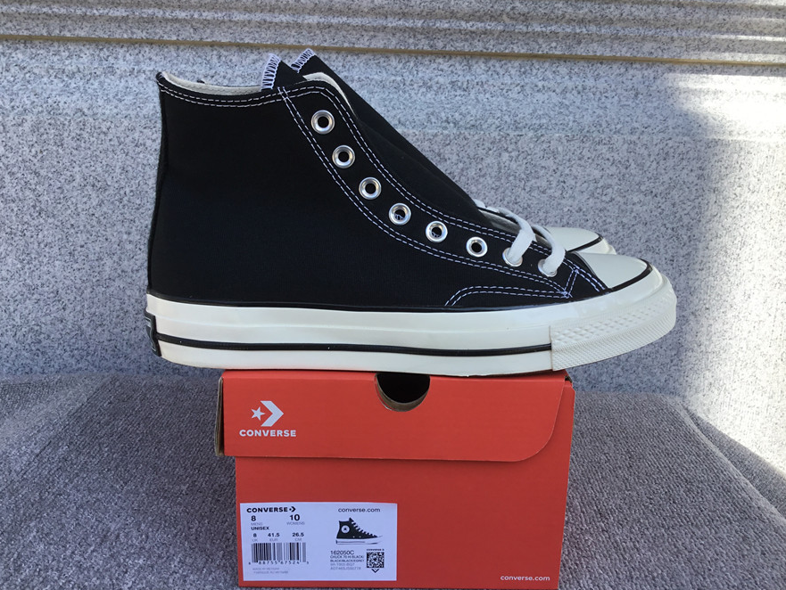 Iconic Converse x Comme des Garçons Play collaboration featuring the signature red heart with eyes on classic black high-top sneakers. A must-have for sneaker and streetwear collectors.