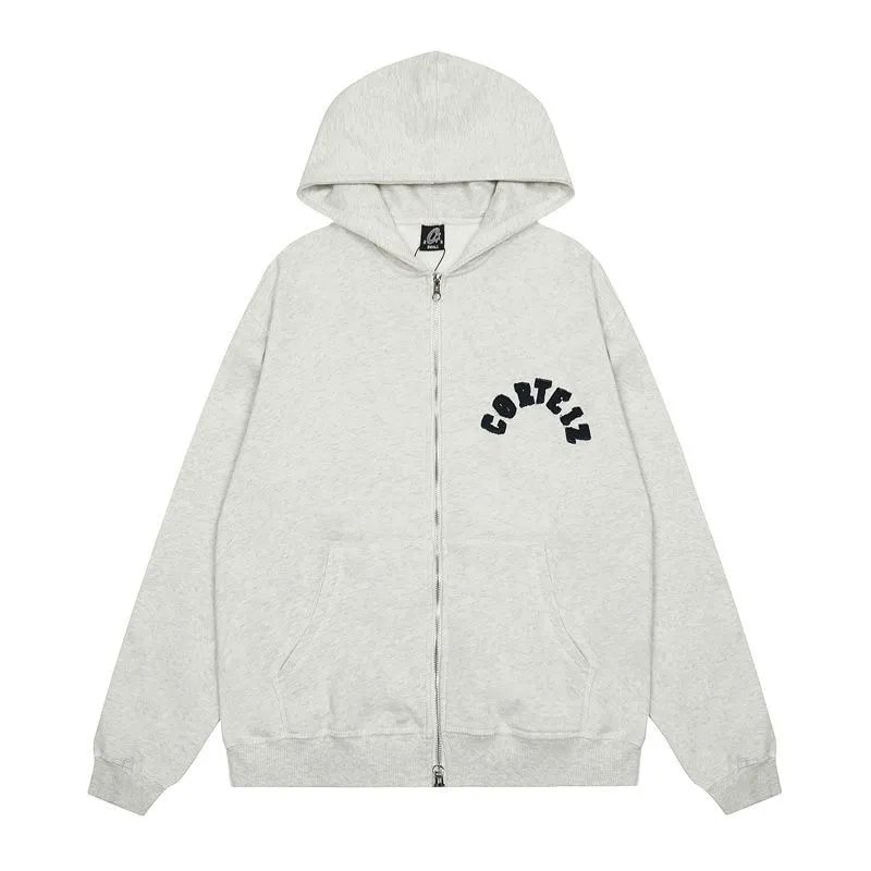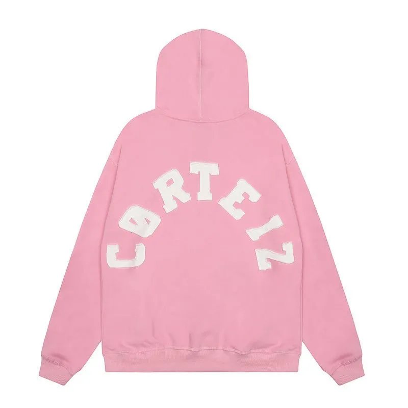 Shop the iconic Corteiz zip-up hoodie featuring bold arched branding. Available in classic grey, vibrant pink, and sleek black for effortless streetwear style.