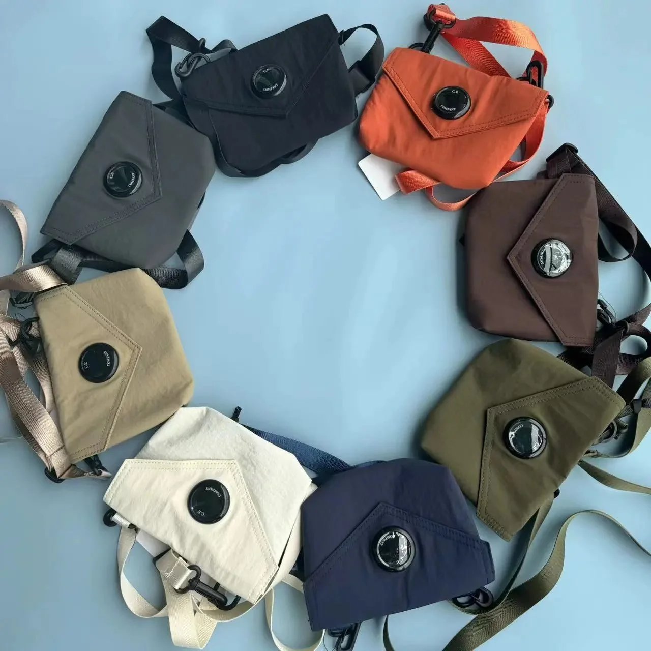 Explore the iconic C.P. Company crossbody bags featuring signature snap closures and durable nylon construction. Available in multiple colors for everyday style and functionality.