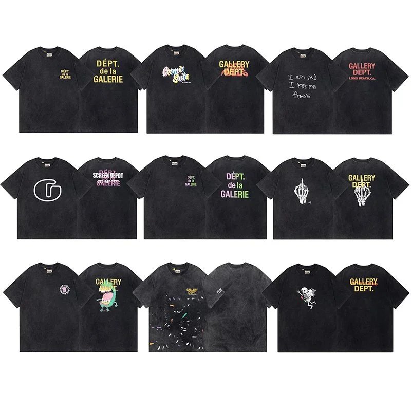 Explore the Dépt. de la Galerie black t-shirt collection featuring bold graphics, hand-drawn typography, and edgy art motifs on premium distressed cotton fabric.