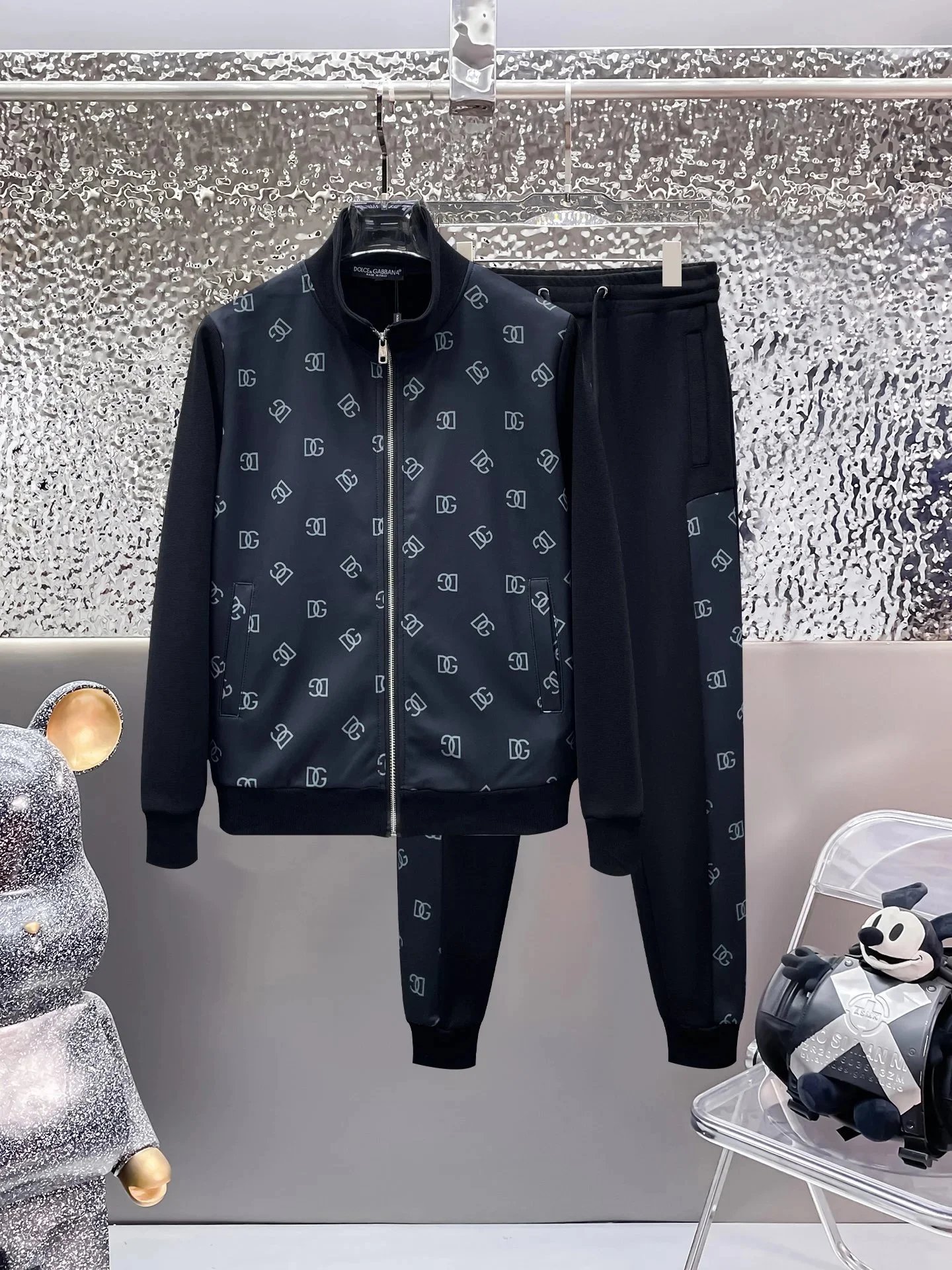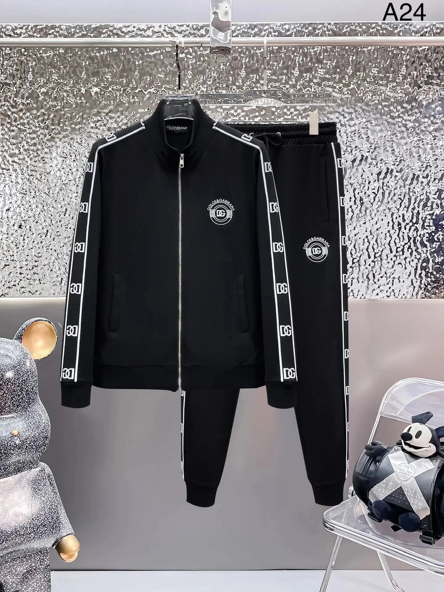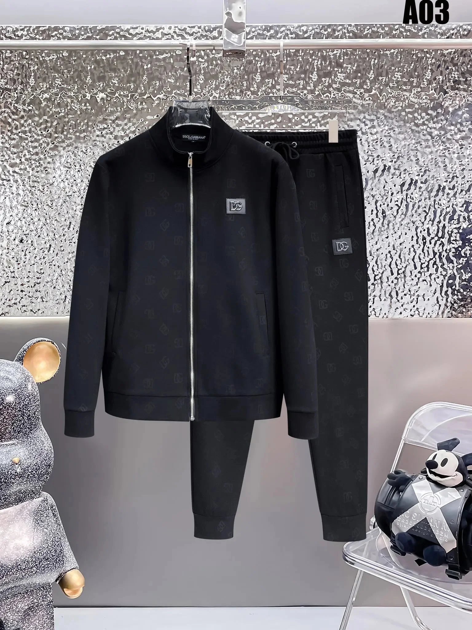 Elevate your casual look with this sleek white DG logo tracksuit featuring a zip-up bomber jacket and matching joggers for comfort and style.