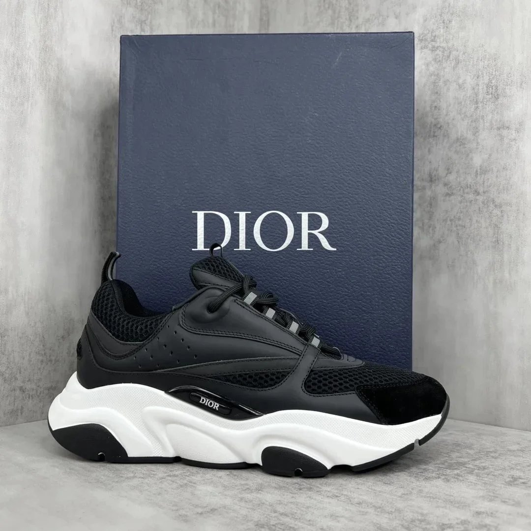 Elevate your streetwear with DIOR B27 sneakers featuring bold black and silver mesh design, premium materials, and signature chunky sole for style and comfort.