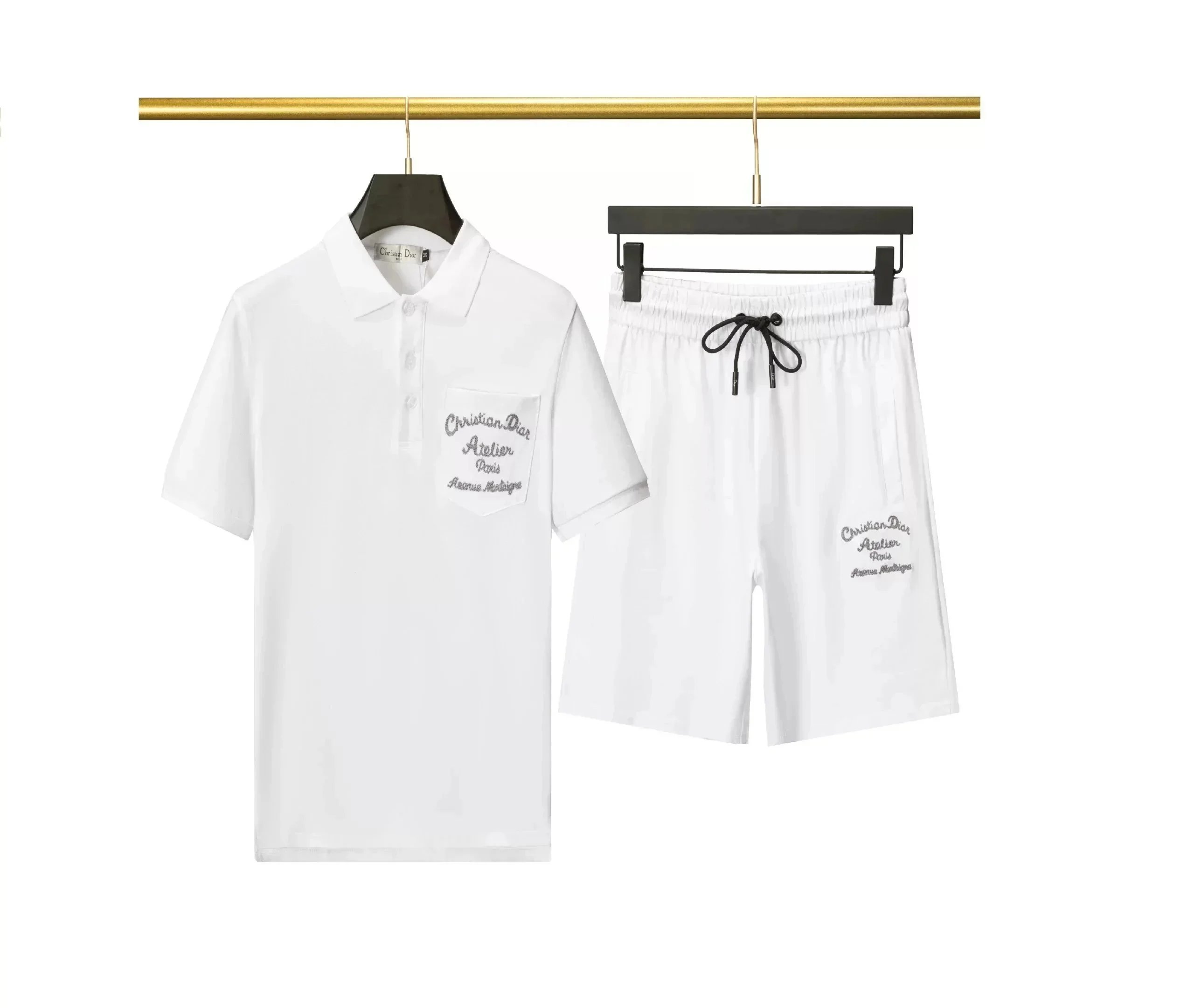Elegant Dior black monogram print t-shirt paired with matching drawstring shorts for a luxurious casual look. Ideal for modern fashion-forward men seeking premium comfort and style.