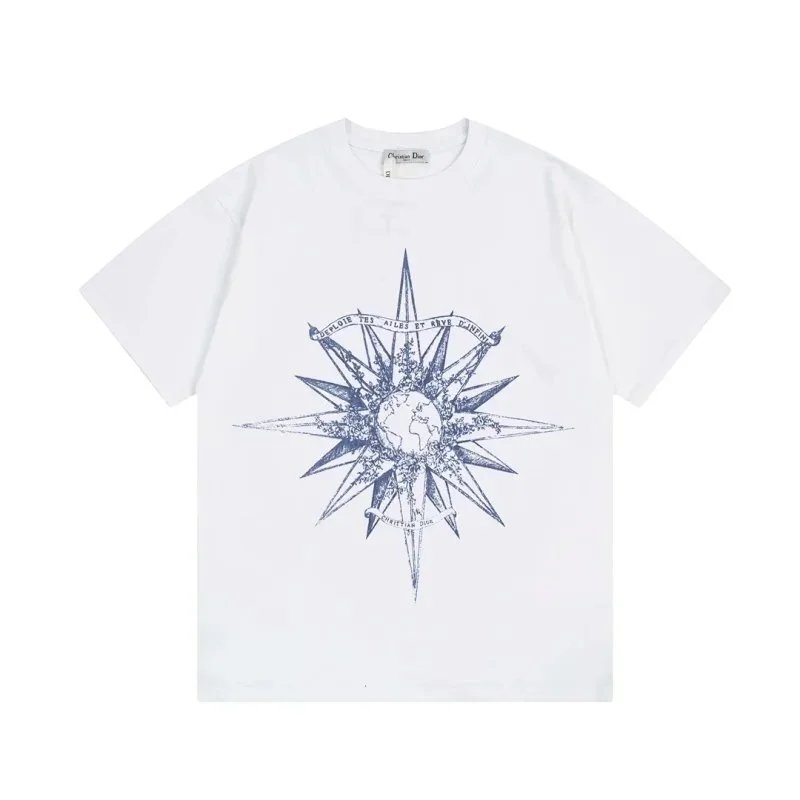 Explore the Dior men's collection featuring premium polo shirts and graphic t-shirts with signature logos, patterns, and compass motifs. Ideal for casual elegance.