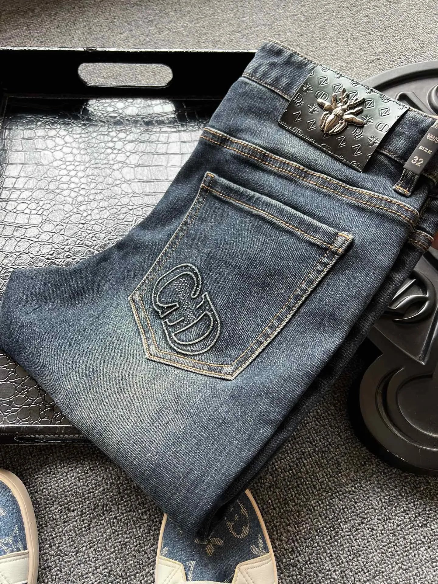 Elevate your wardrobe with these premium Dior monogram denim jeans in light blue. Featuring a subtle all-over logo print and classic straight fit, they blend luxury and style effortlessly.