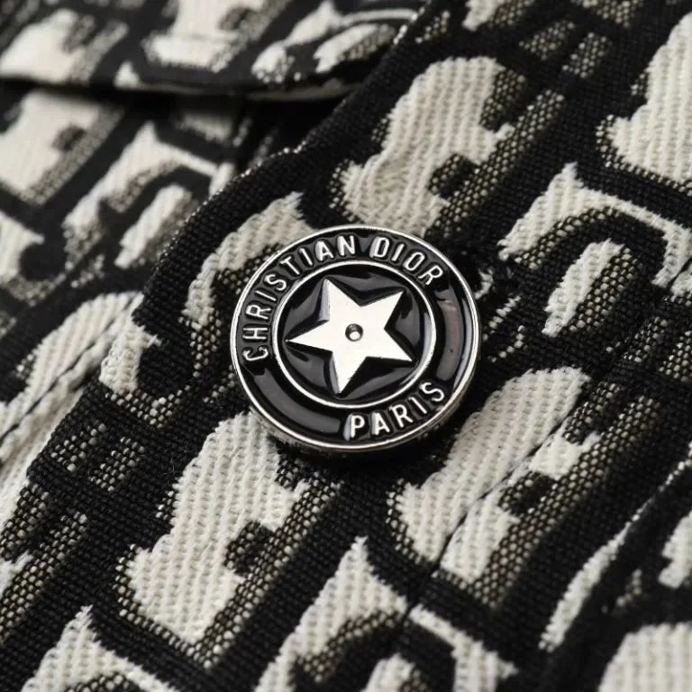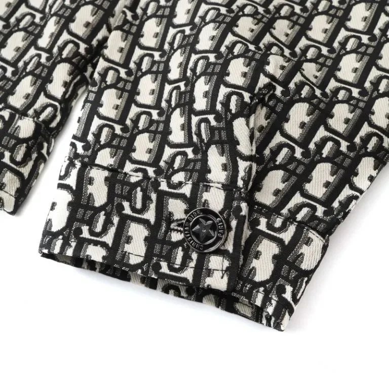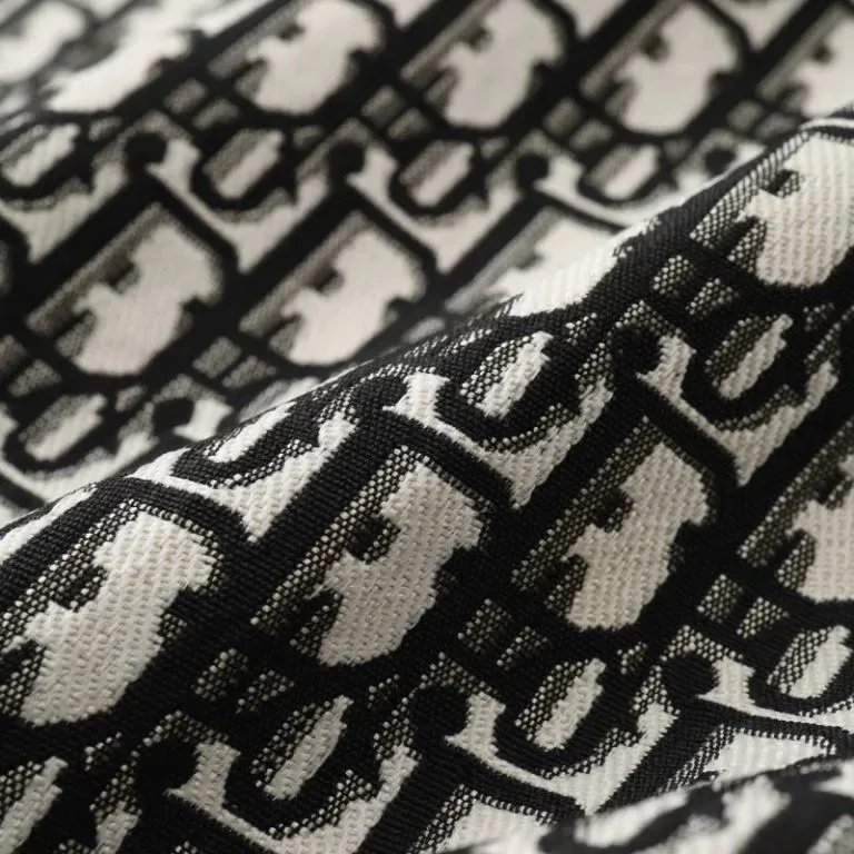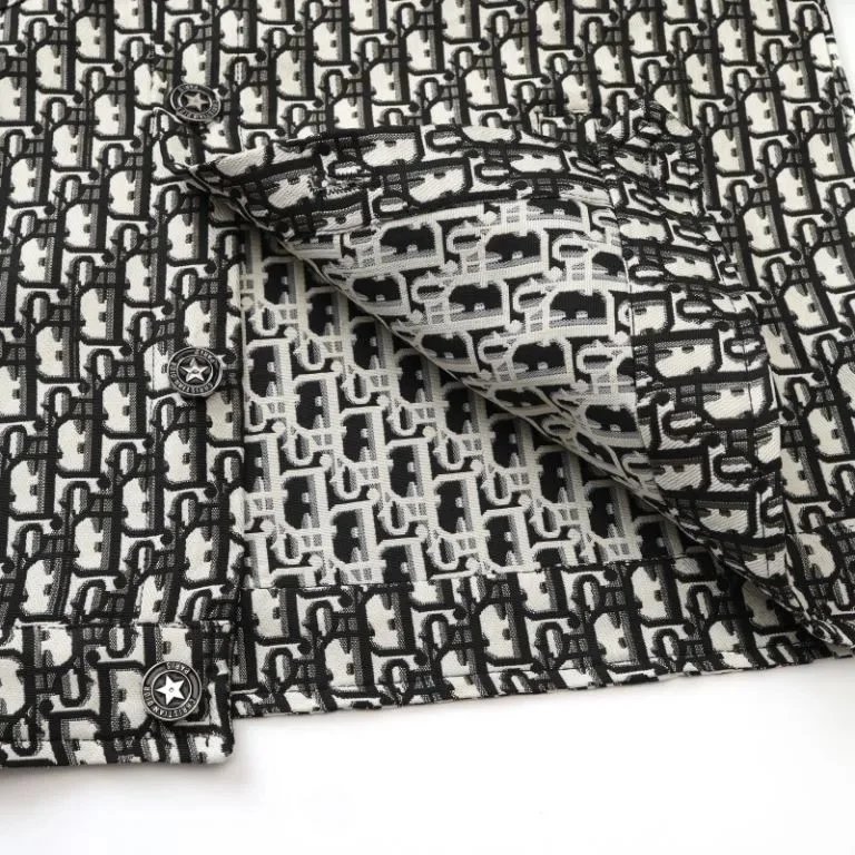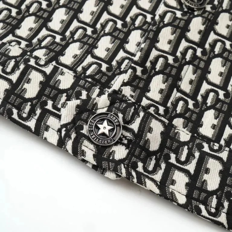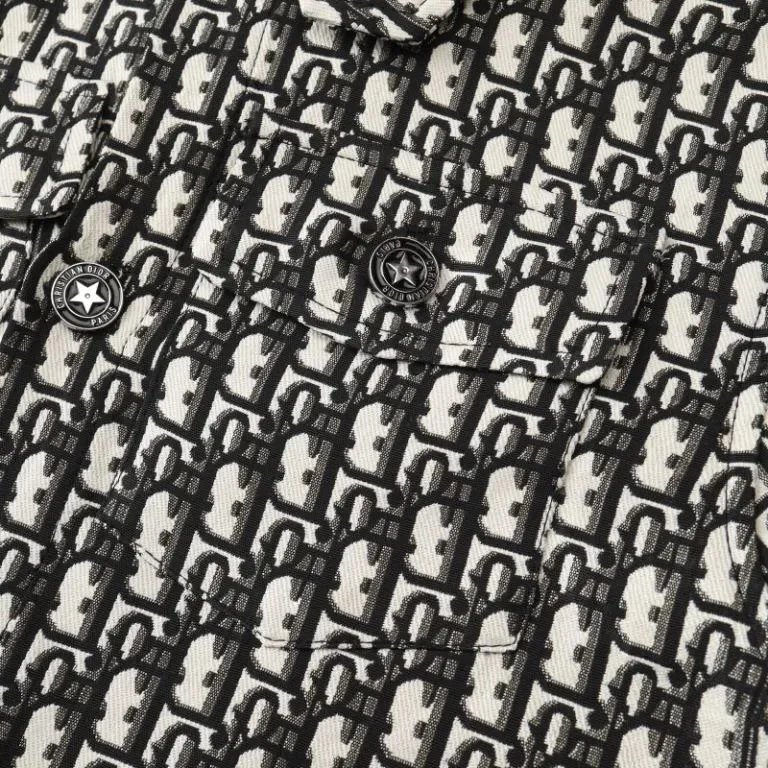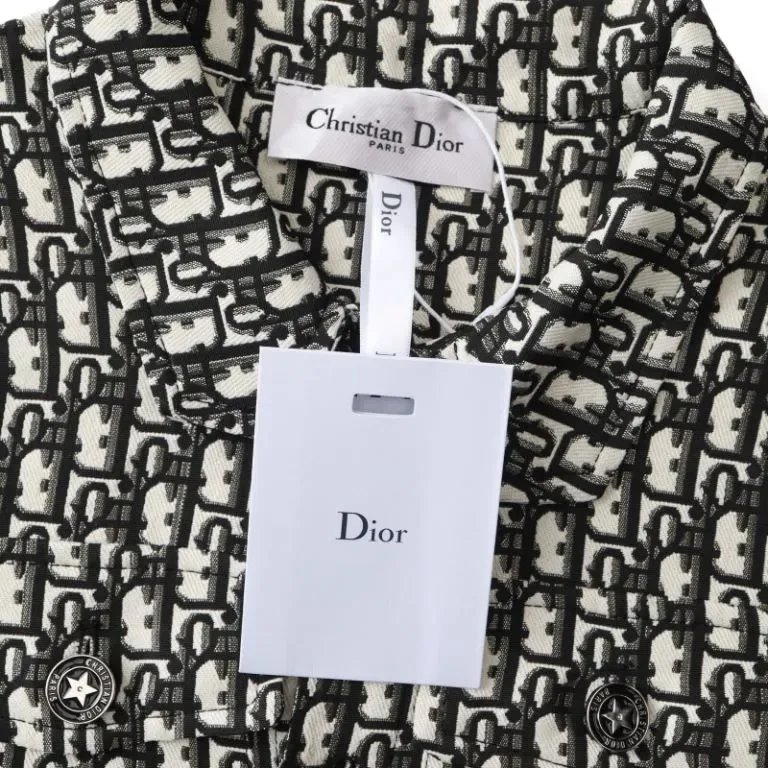 Elegant Dior cropped jacket featuring a signature monogram tweed pattern in black and white. Perfect for a chic, high-fashion look.