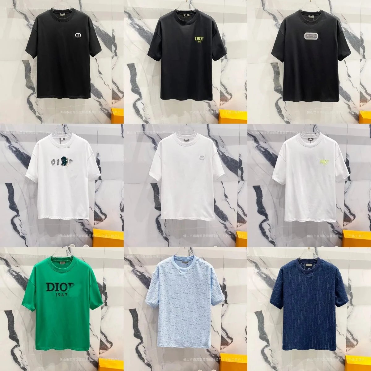 Discover the Dior T-Shirt collection featuring bold graphics, textured fabrics, and signature logos in vibrant colors like black, white, green, and blue. Ideal for casual luxury style.