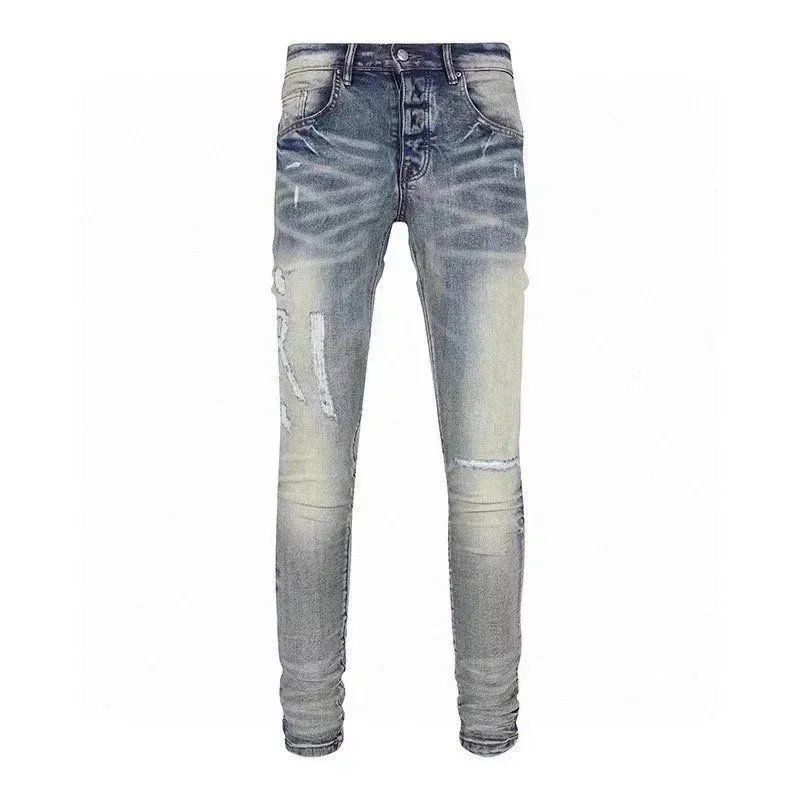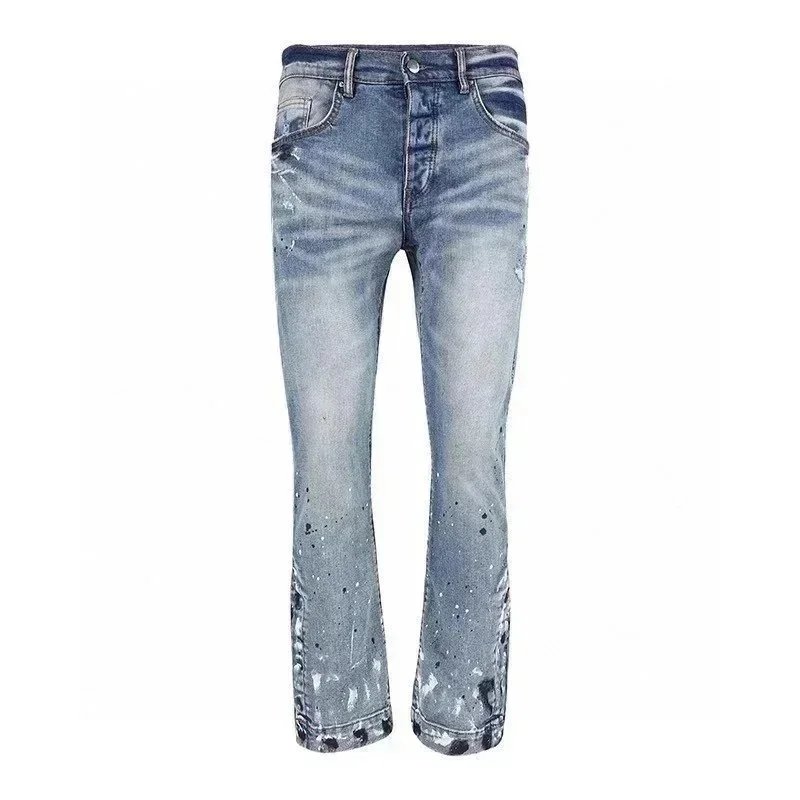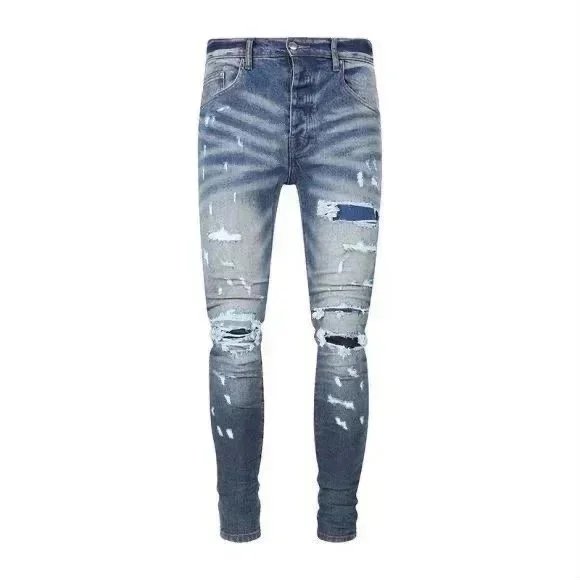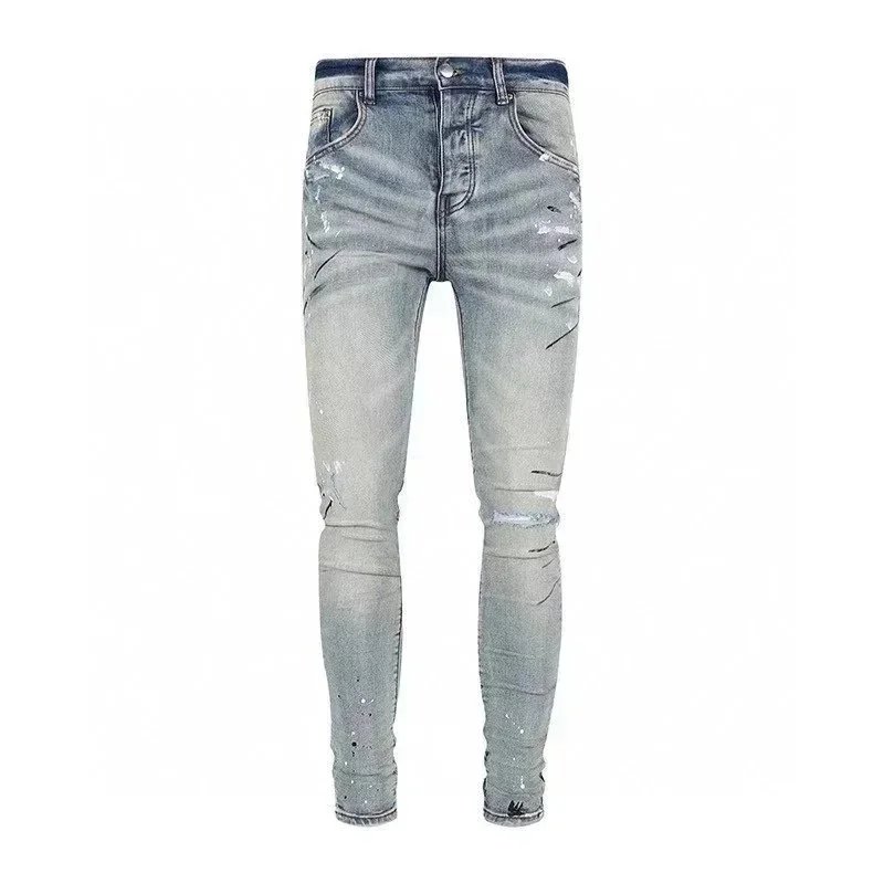 Purple Denim Jeans with Distressed & Paint Splatter Styles