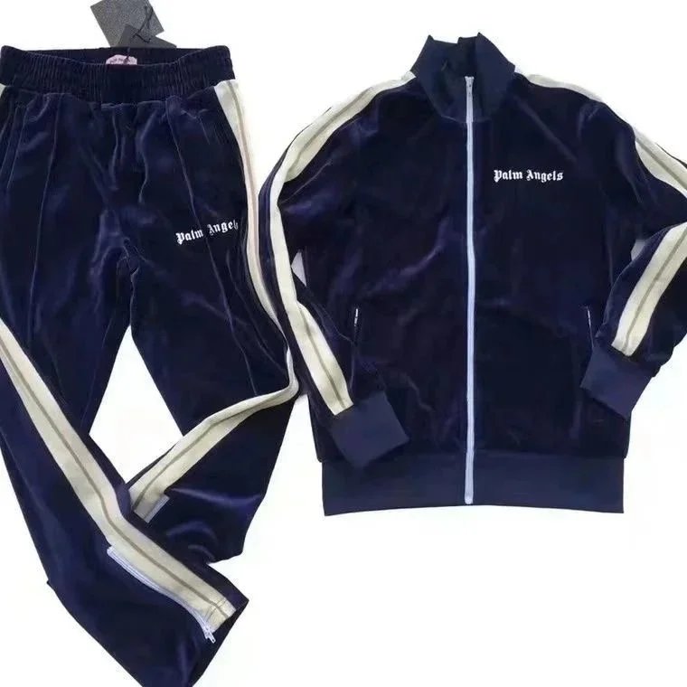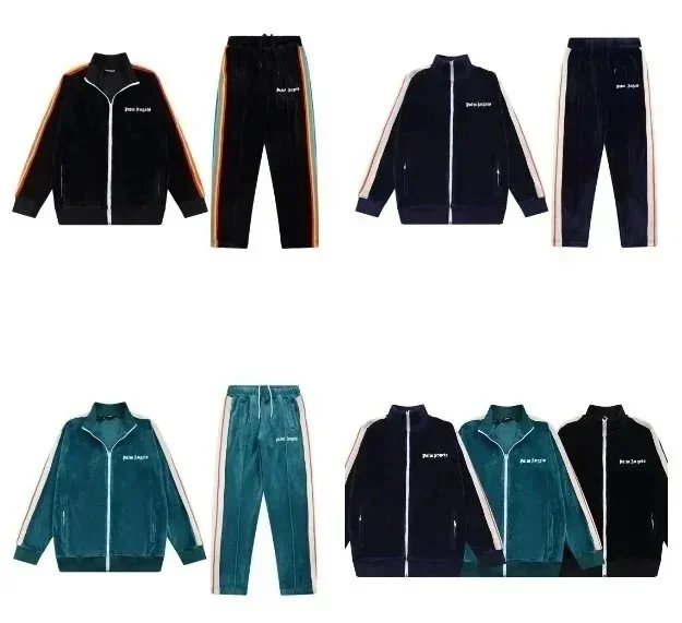 Premium Dolce & Gabbana velour tracksuit set featuring a zip-up jacket and matching pants in black, navy, and teal with contrasting side stripes. Perfect for casual wear or lounging in style.