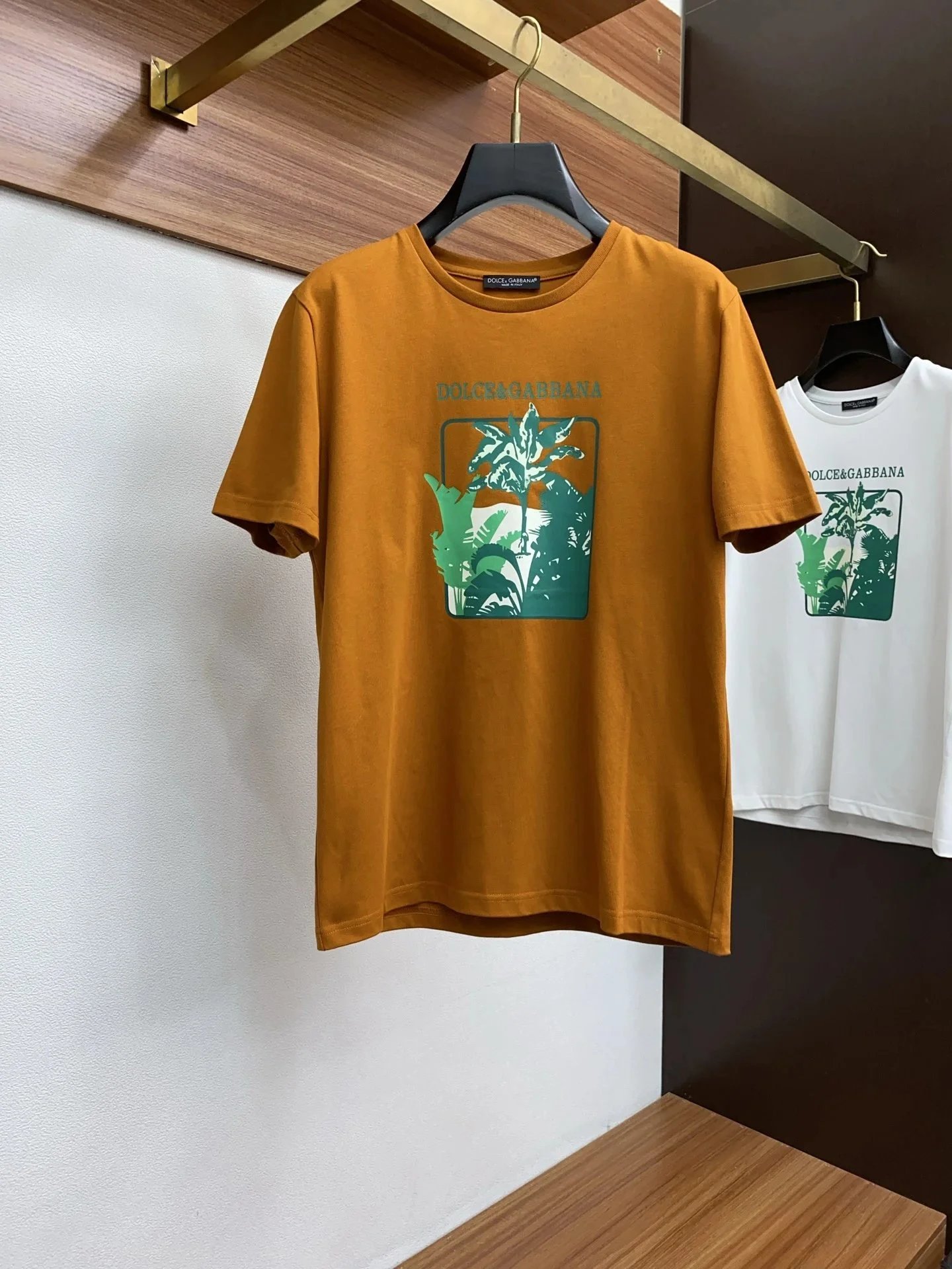 Dolce & Gabbana white cotton t-shirt featuring a bold tropical leaf graphic and brand logo. Ideal for casual summer wear with premium Italian craftsmanship.