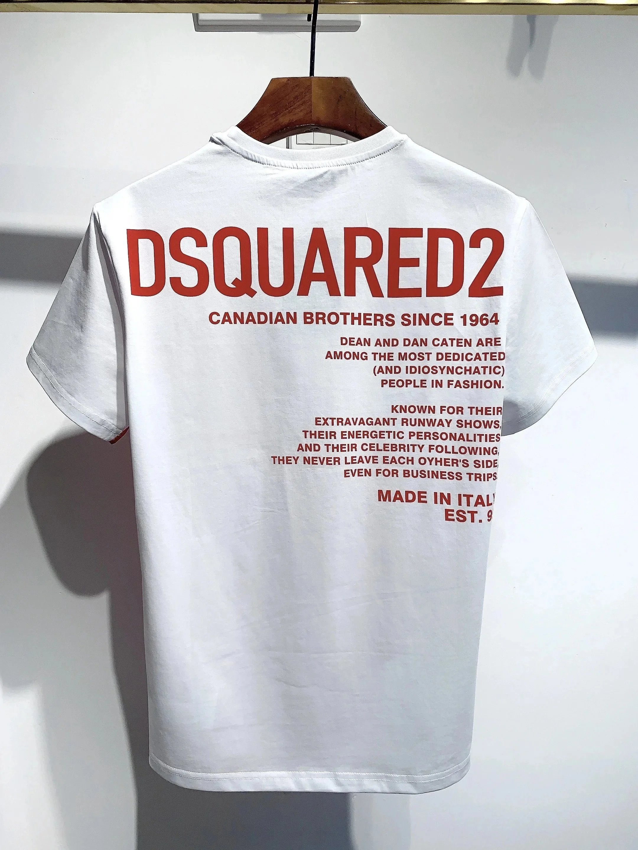 DSQUARED2 DT933 graffiti print t-shirts in white and black featuring bold spray-paint style graphics and cartoon characters. Ideal for urban streetwear enthusiasts.