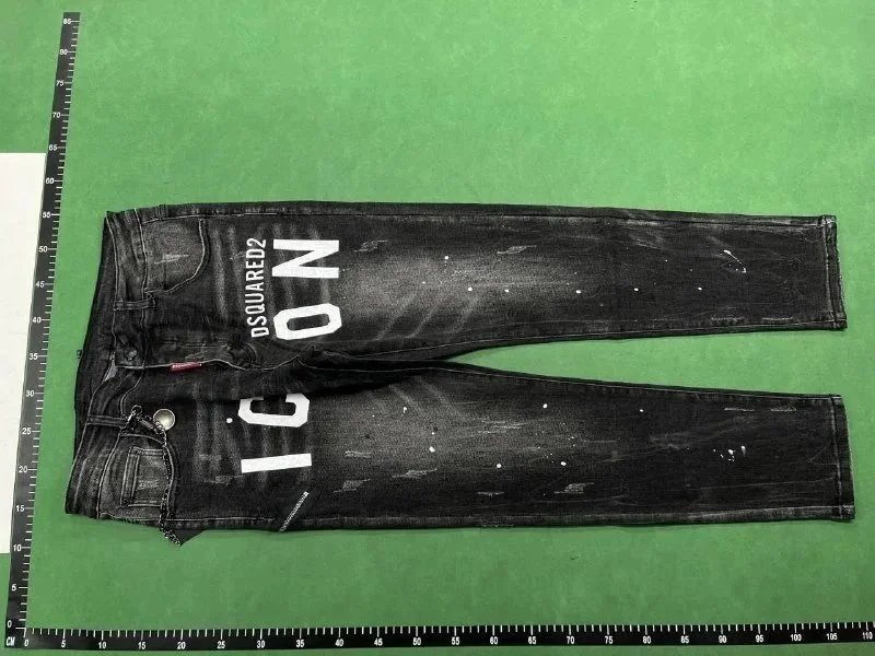 Bold DSQUARED2 Icon jeans featuring spray-paint graphics and distressed detailing for a statement streetwear look.