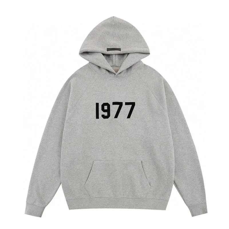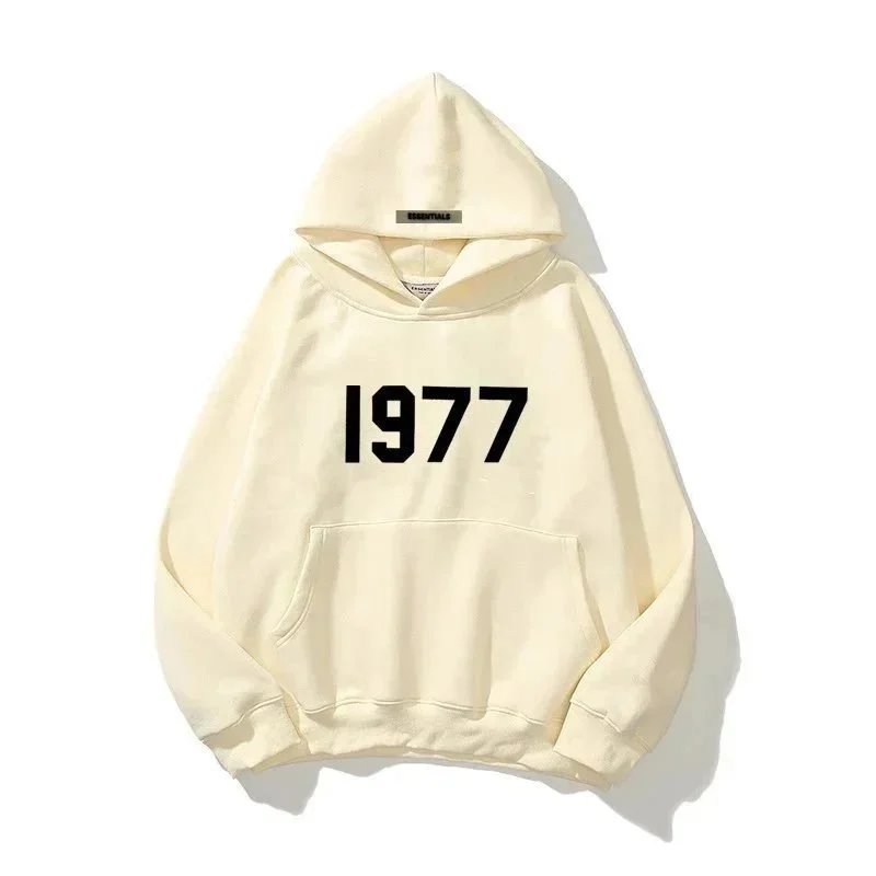 Shop the Essentials hoodie collection featuring bold '1977' and 'ESSENTIALS' logos in classic colors. Perfect for casual comfort with premium cotton construction.
