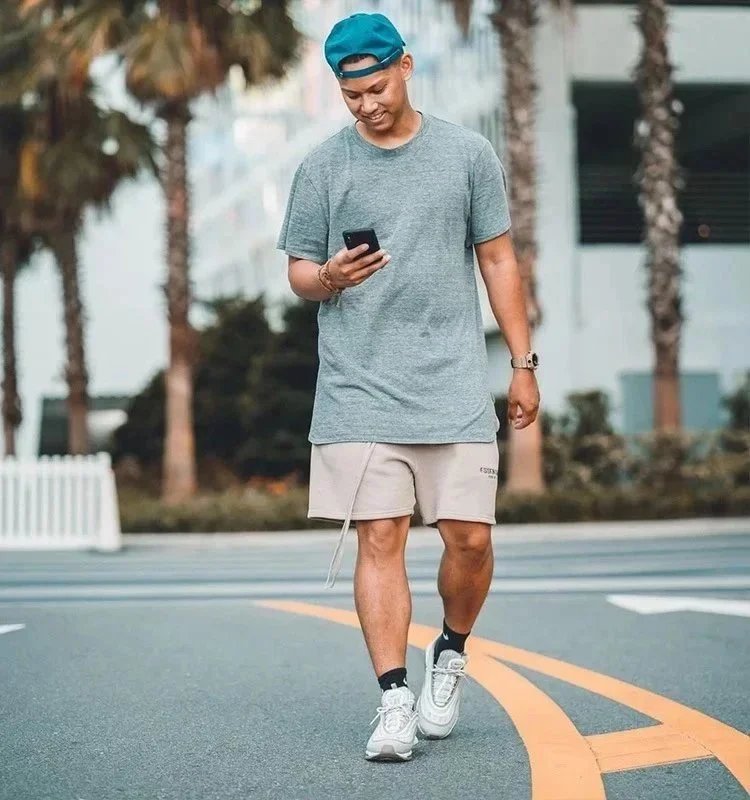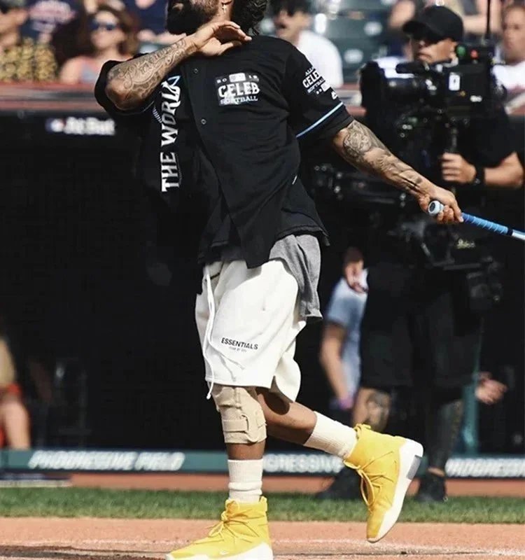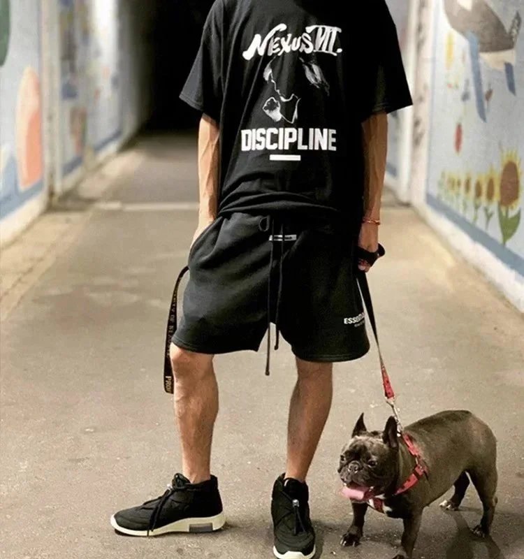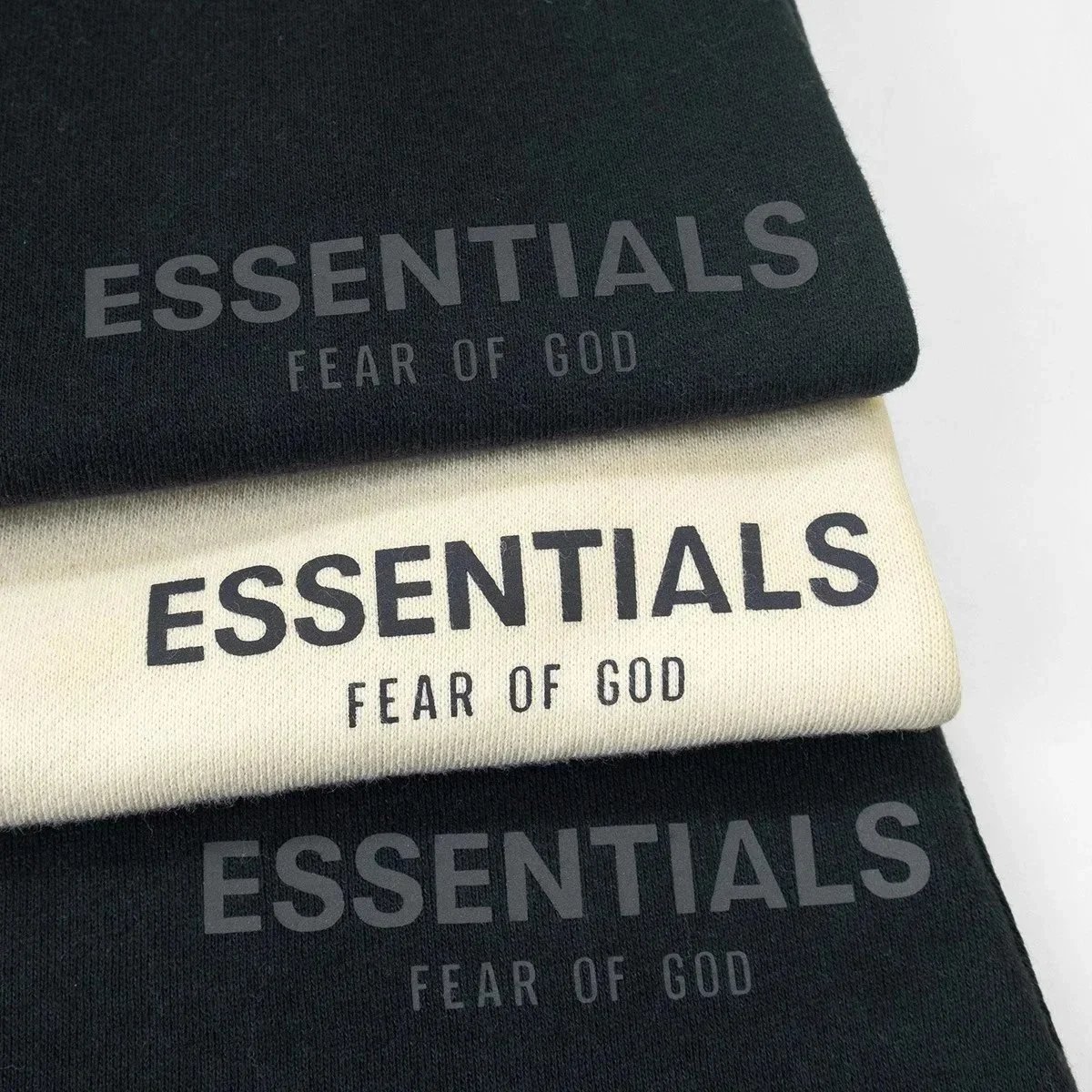 Premium Fear of God Essentials drawstring shorts in multiple colors and designs. Featuring iconic branding like '1977' and 'III' logos, these versatile athletic shorts are perfect for casual wear and street style.