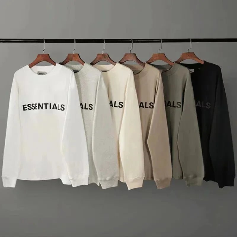 Shop the Fear of God Essentials collection featuring premium long sleeve tees in minimalist and graphic designs. Perfect for everyday wear with a luxury streetwear edge.