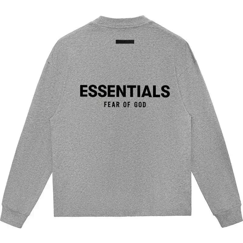 Elevate your wardrobe with the Fear of God Essentials long sleeve tee in sleek grey. Crafted for comfort and style, it features bold branding and a relaxed fit.