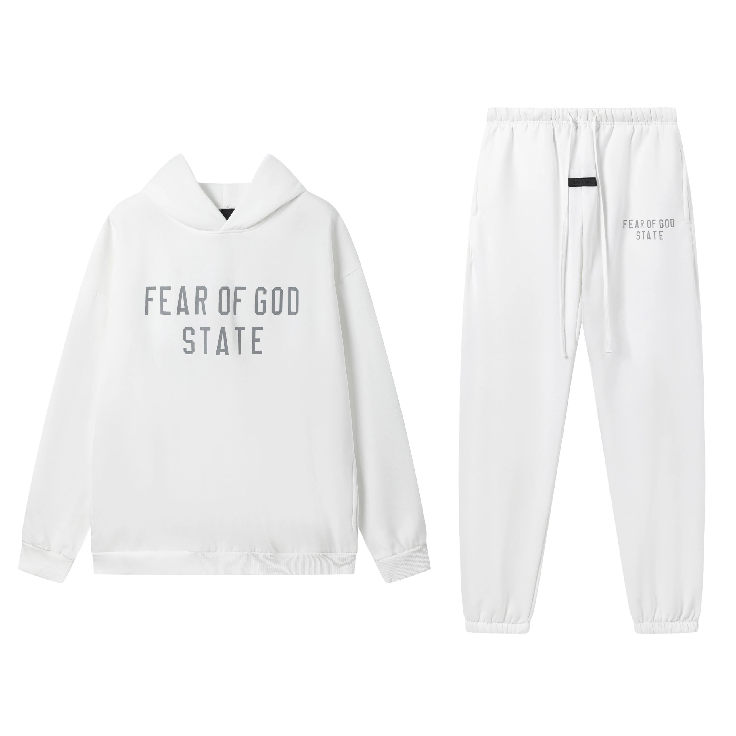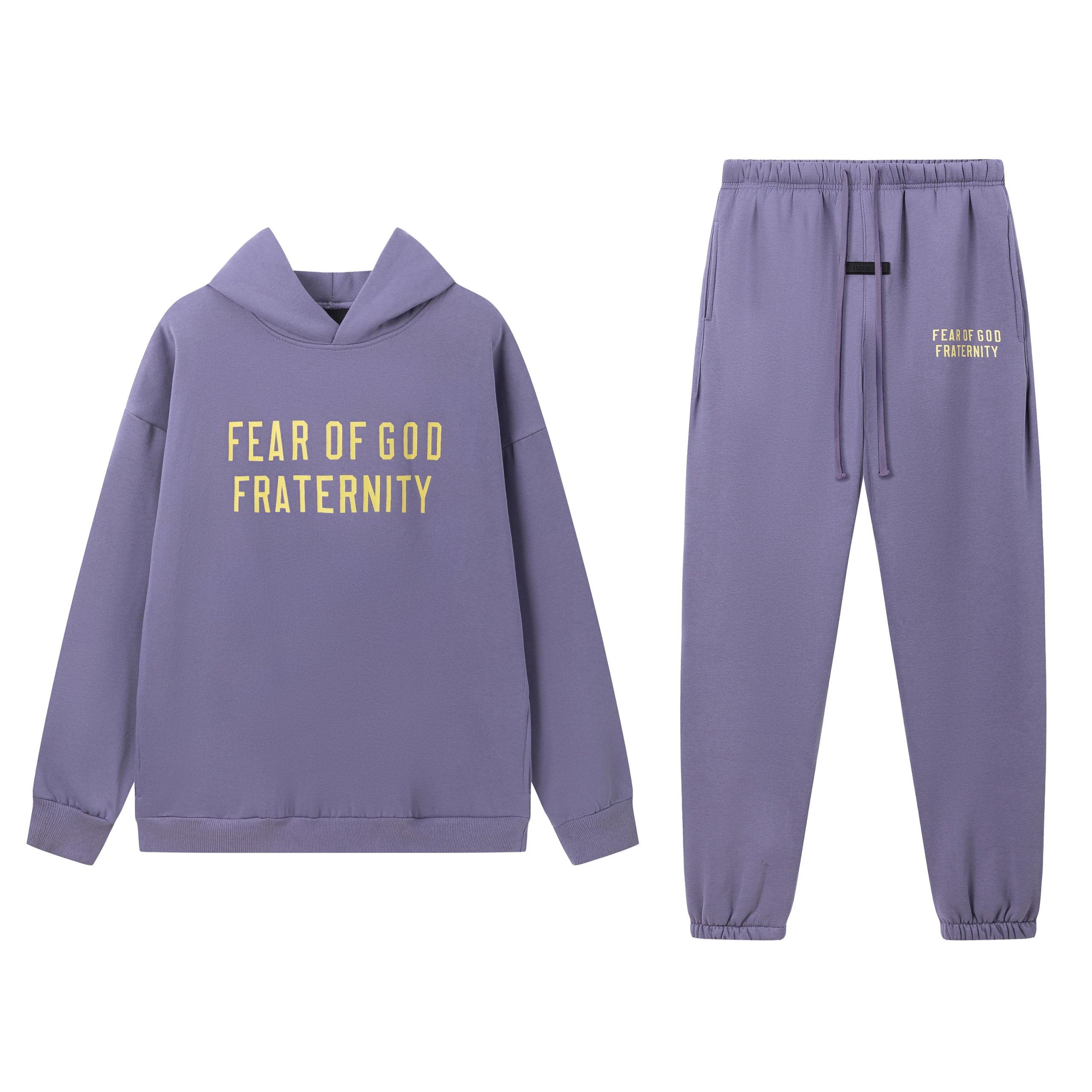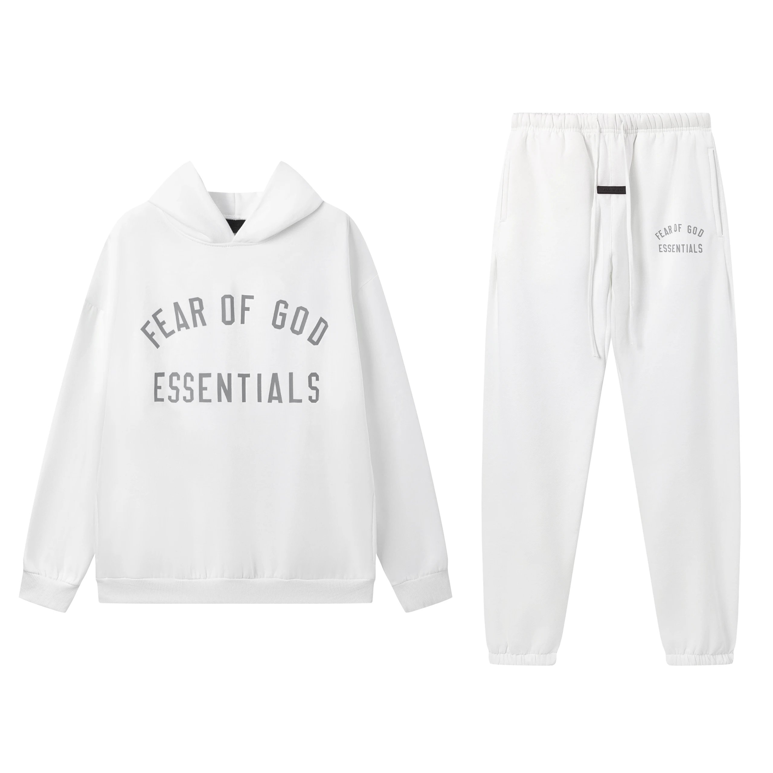 Shop the Fear of God Essentials olive green hoodie and jogger set — premium comfort with iconic branding for everyday wear.