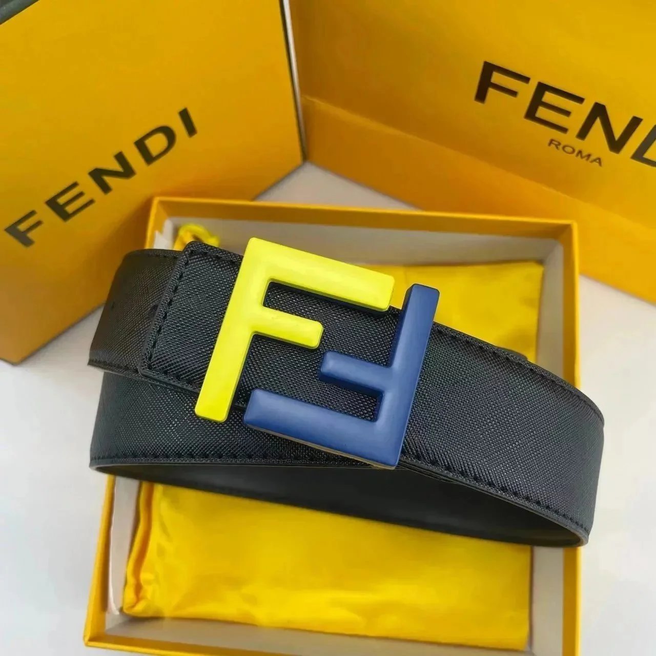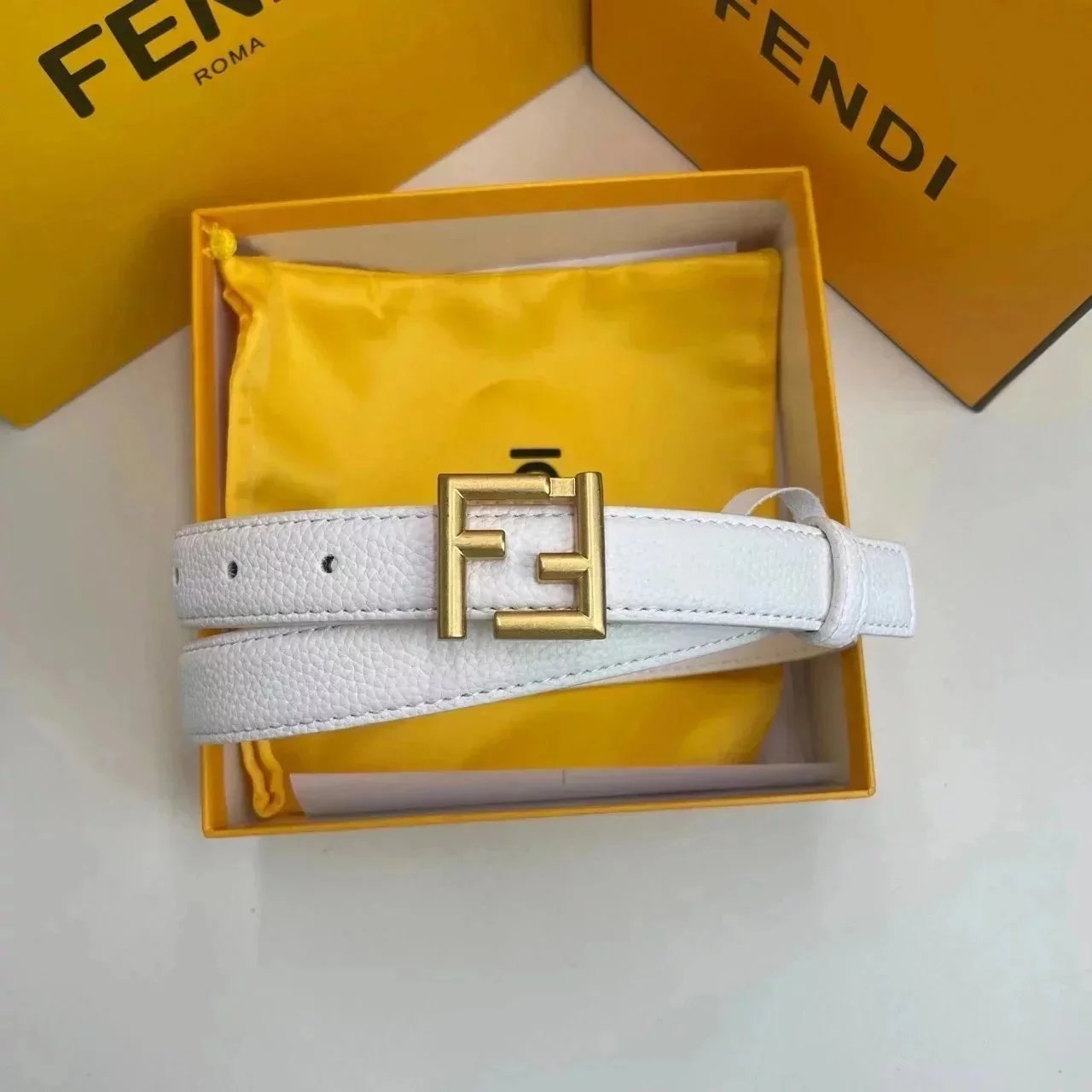 Explore the iconic FENDI FF logo belts featuring classic monogram patterns and bold metal buckles. Available in various colors including brown, black, white, and multi-color options.