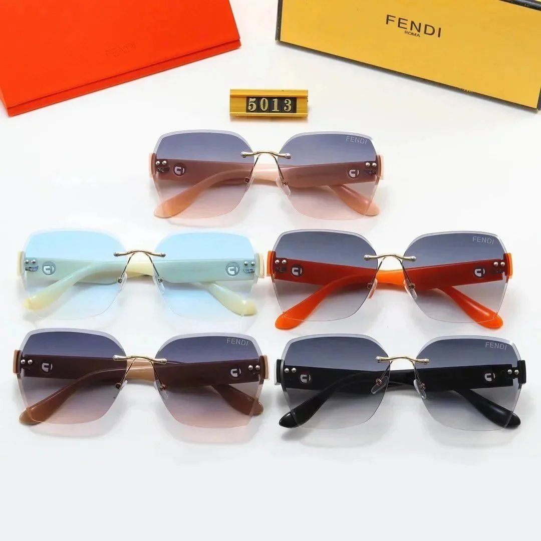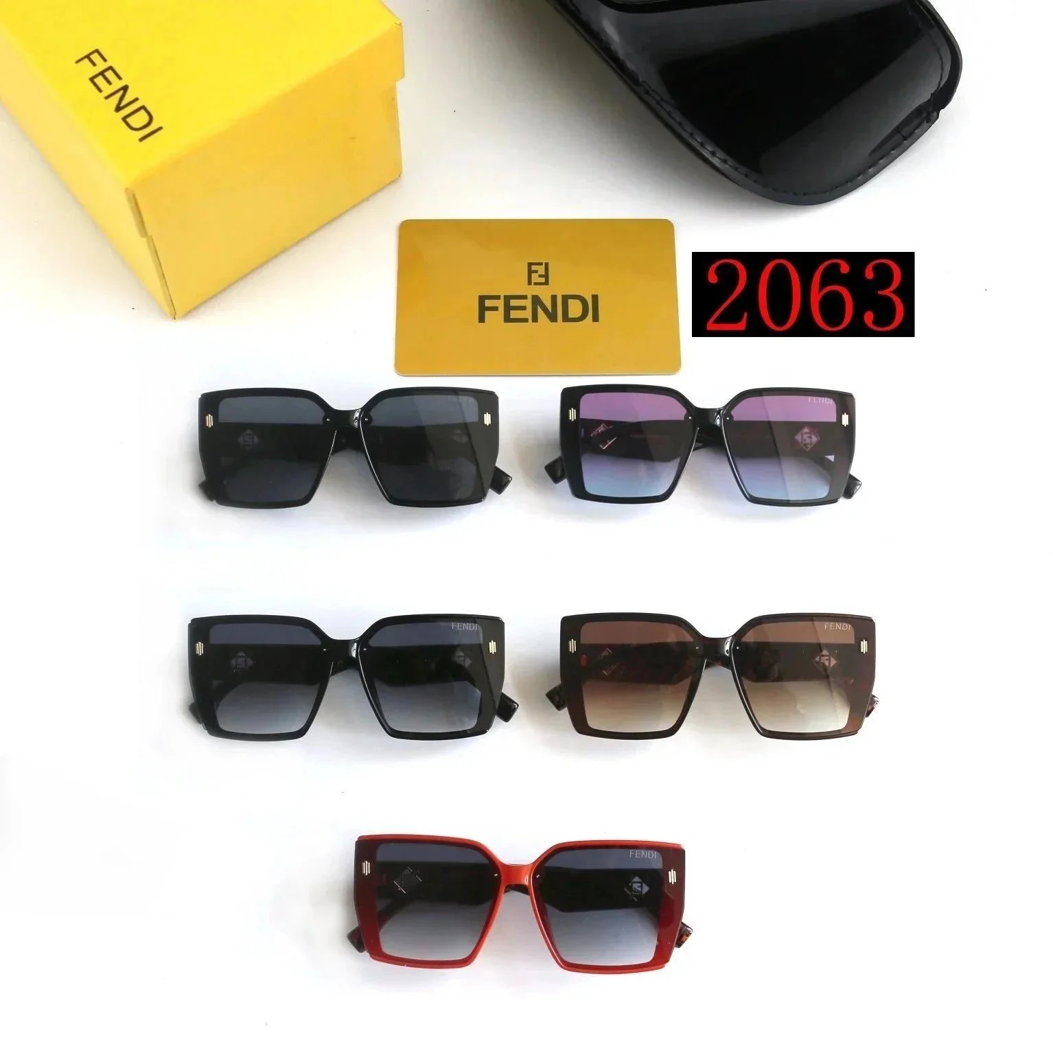 Stylish FENDI square sunglasses featuring iconic FF logo patterns and premium materials. Available in multiple colors including red, black, blue, and gold tones for a bold fashion statement.