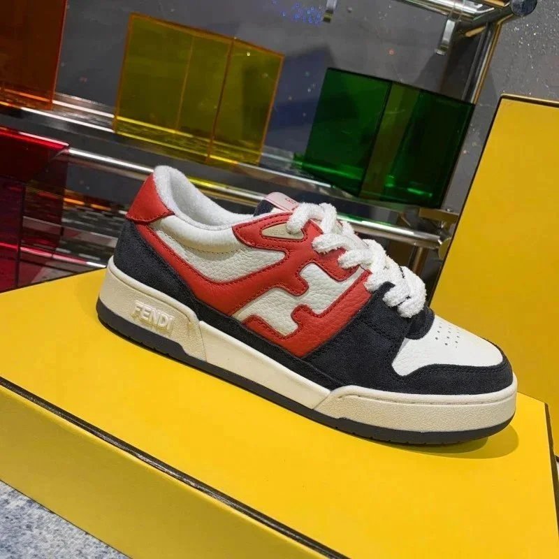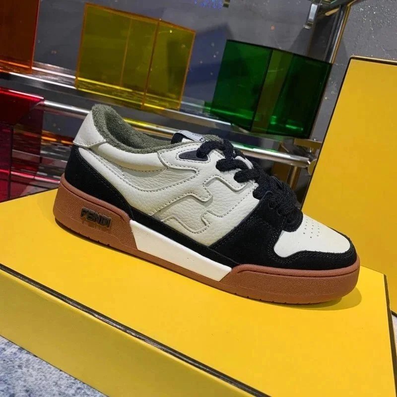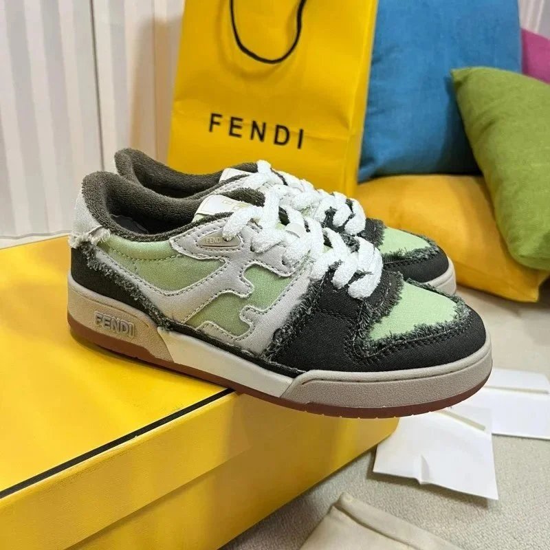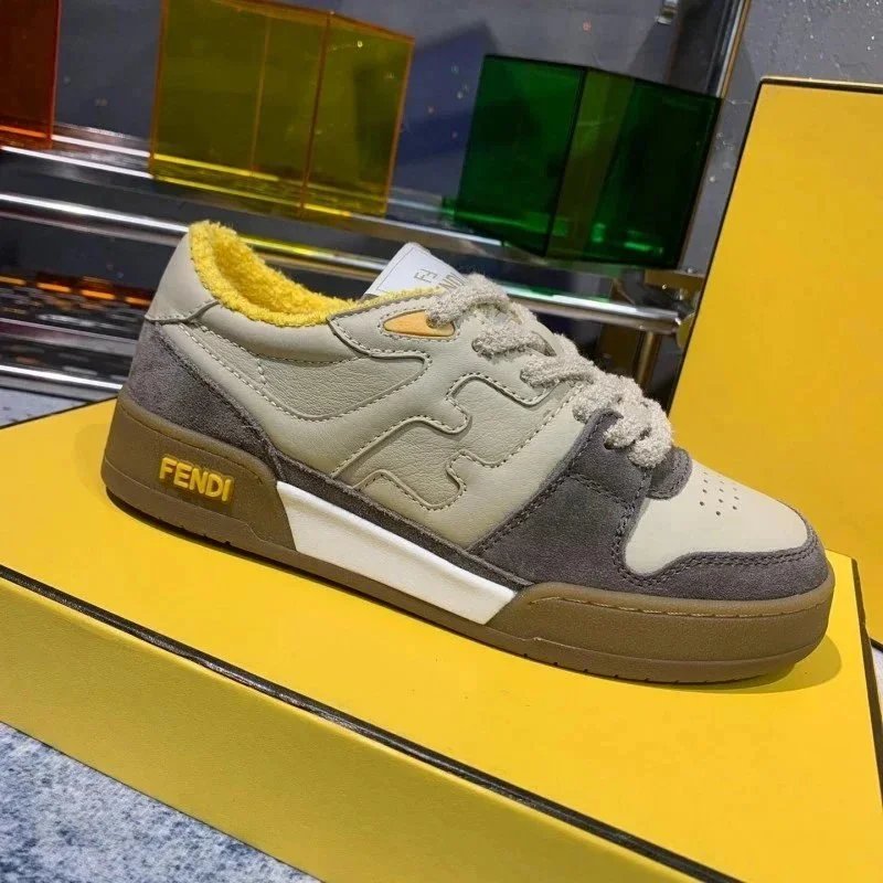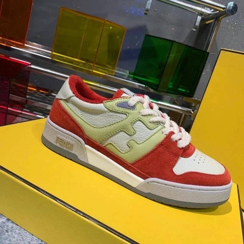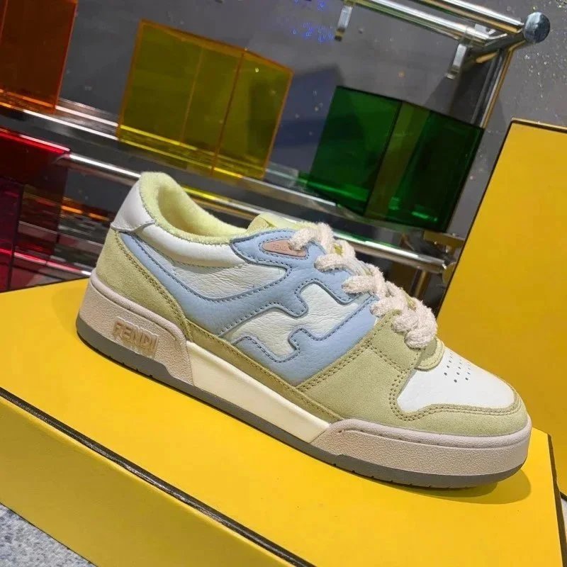Elevate your streetwear with these Fendi low-top sneakers featuring bold yellow and purple panels, signature FF logo, and premium suede and leather construction.