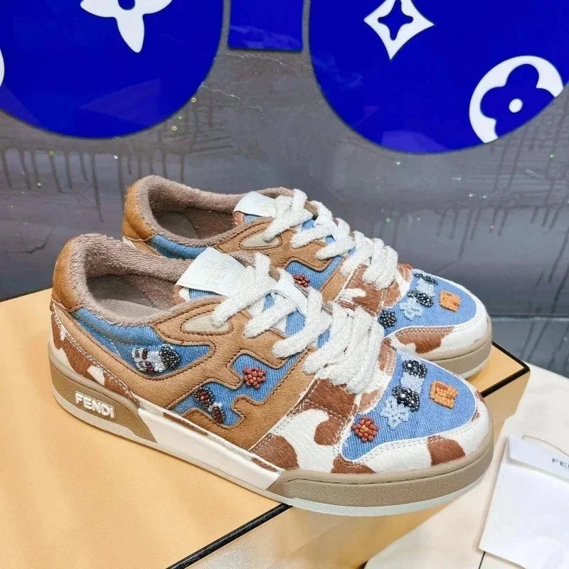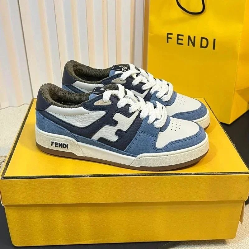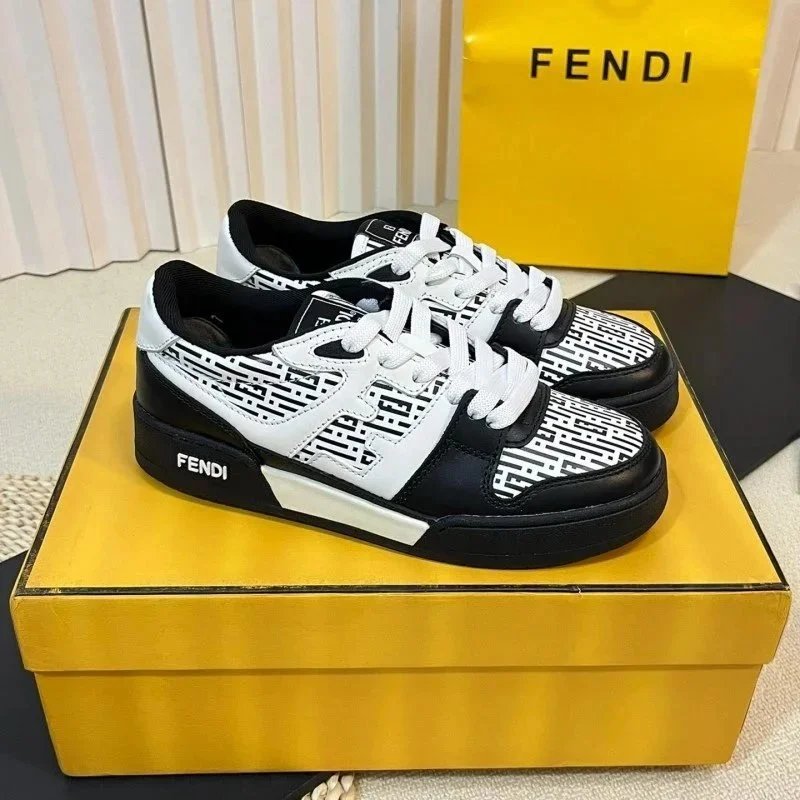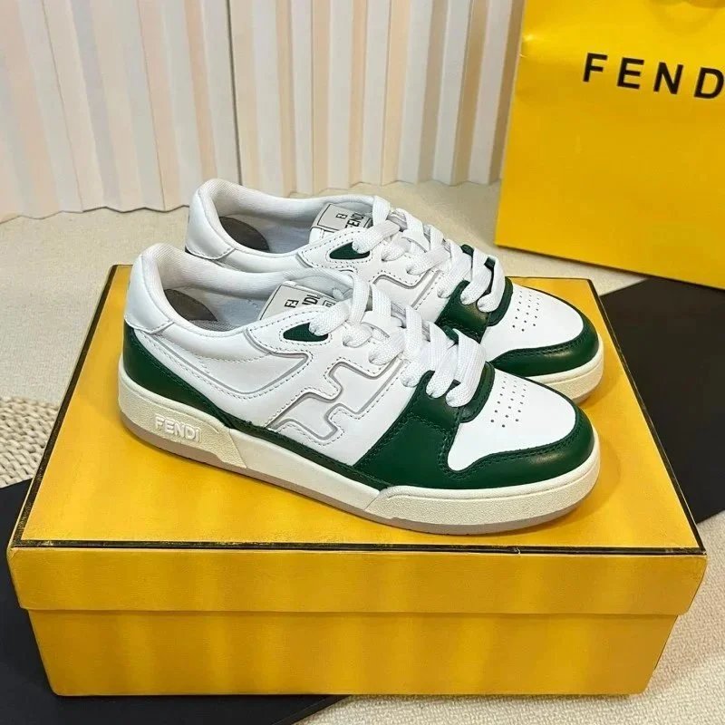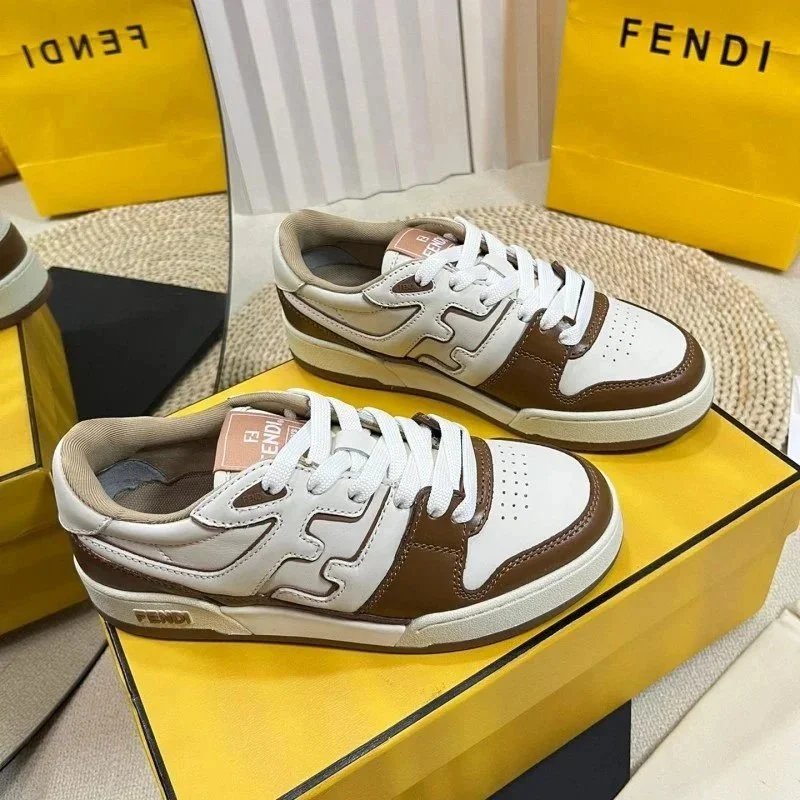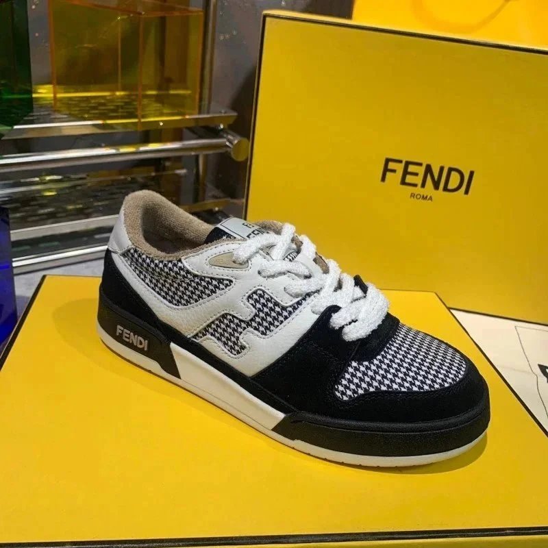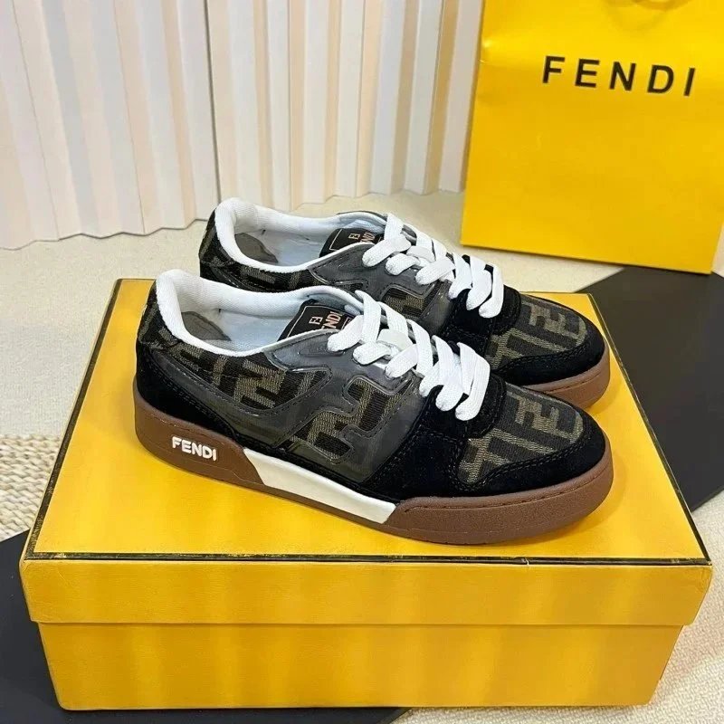 Elevate your streetwear with these Fendi low-top sneakers featuring bold yellow and purple panels, signature FF logo, and premium suede and leather construction.