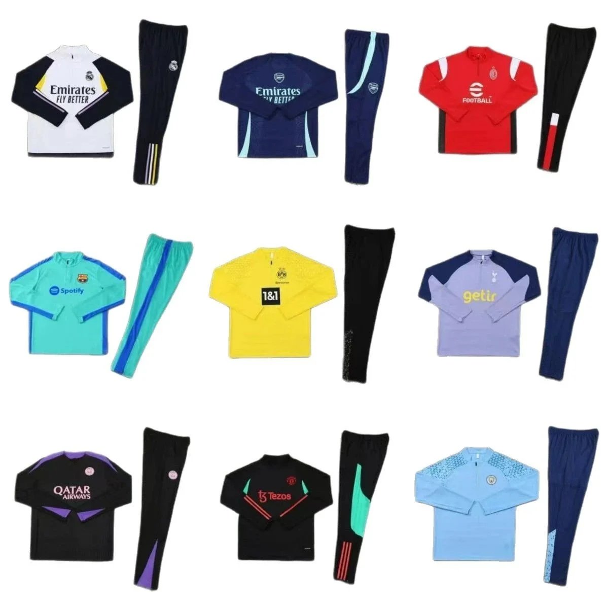 High-performance football training kits featuring authentic team logos and sponsor branding. Ideal for clubs and athletes seeking professional-grade practice gear.
