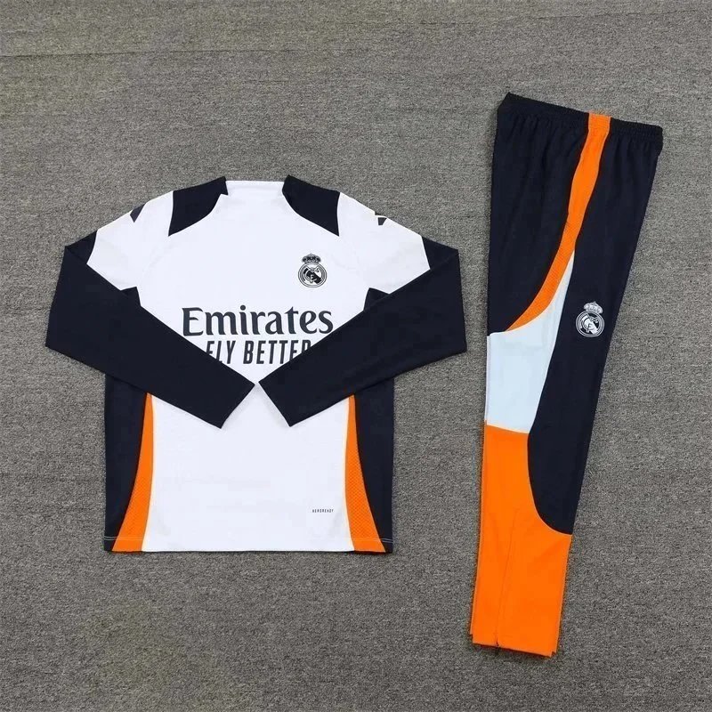 Discover official-style football training sets featuring prominent sponsor logos like Emirates and Tezos, designed for team warm-ups and practice sessions. Includes matching tops and pants in varied colorways.