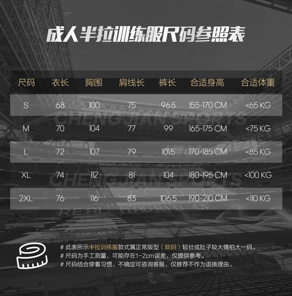 Collection of football training sets featuring official club logos and sponsor branding. Includes long-sleeve quarter-zip tops and matching pants in various colors and patterns for professional team use.