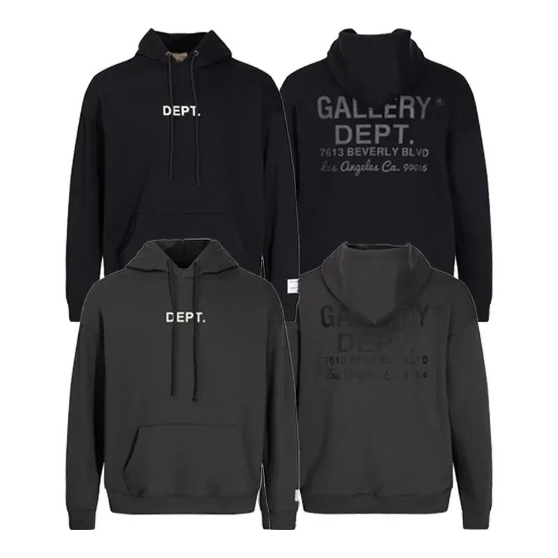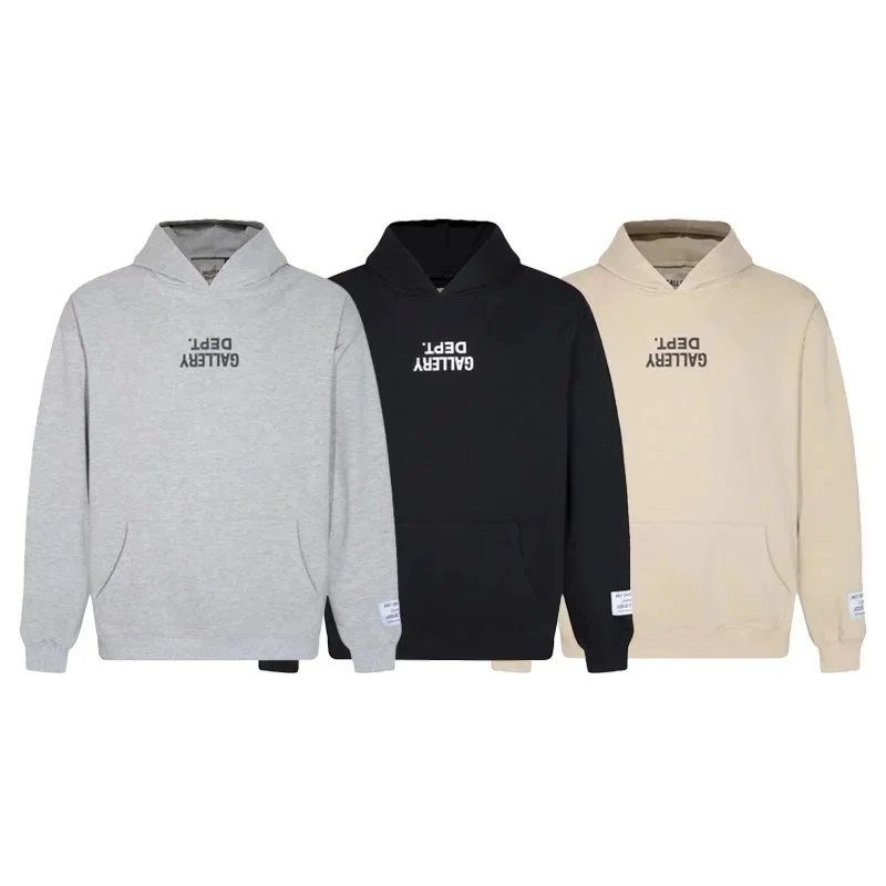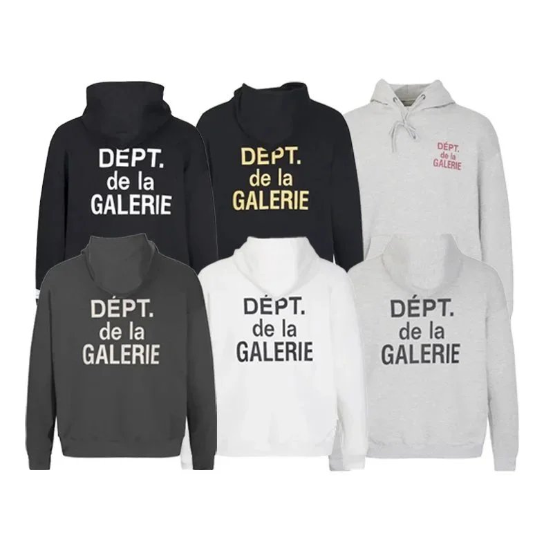 Shop the iconic Gallery Dept. hoodie collection featuring bold graphics, 'Dept. de la Galerie' prints, and premium streetwear style in multiple colors.