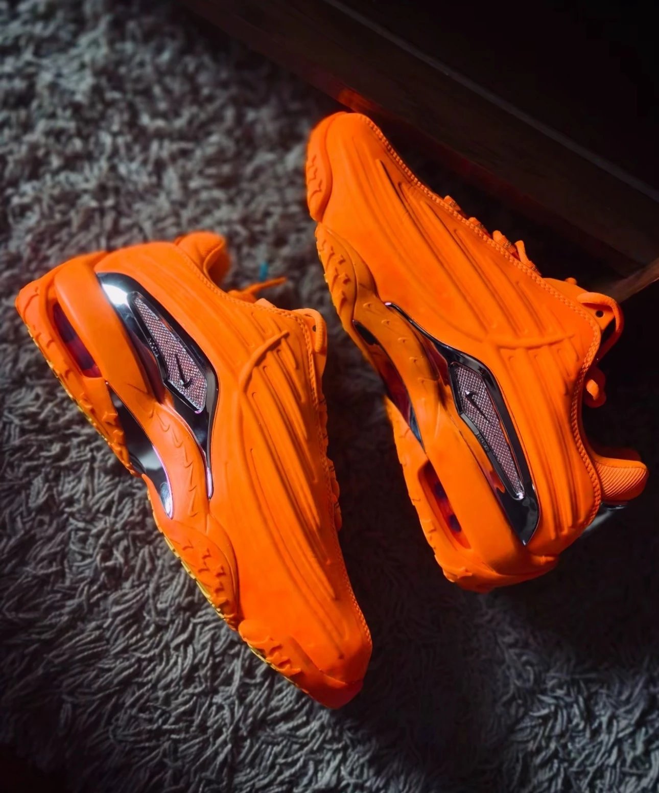 A vibrant collection of colorful air-cushioned sneakers featuring transparent soles and bold design accents, perfect for casual wear or street style. Each pair showcases unique hues and modern construction.