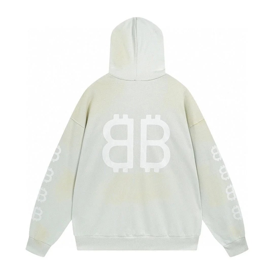 Stylish hoodies featuring bold Bitcoin logo prints on chest and sleeves. Available in black, navy, and cream for a statement crypto look.
