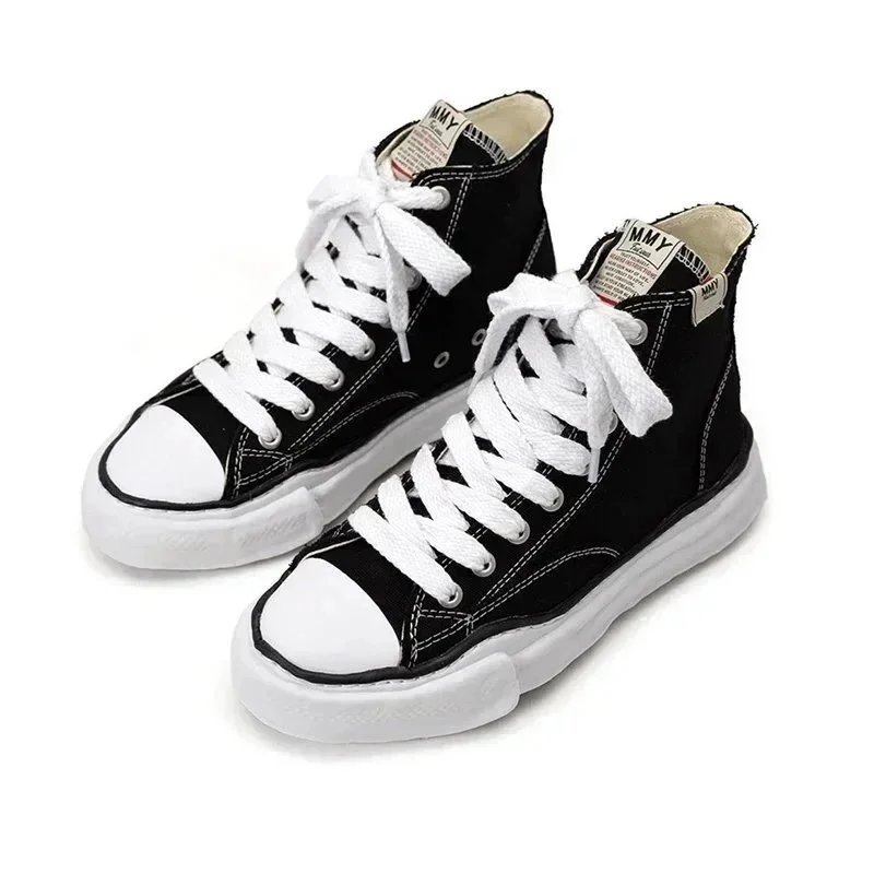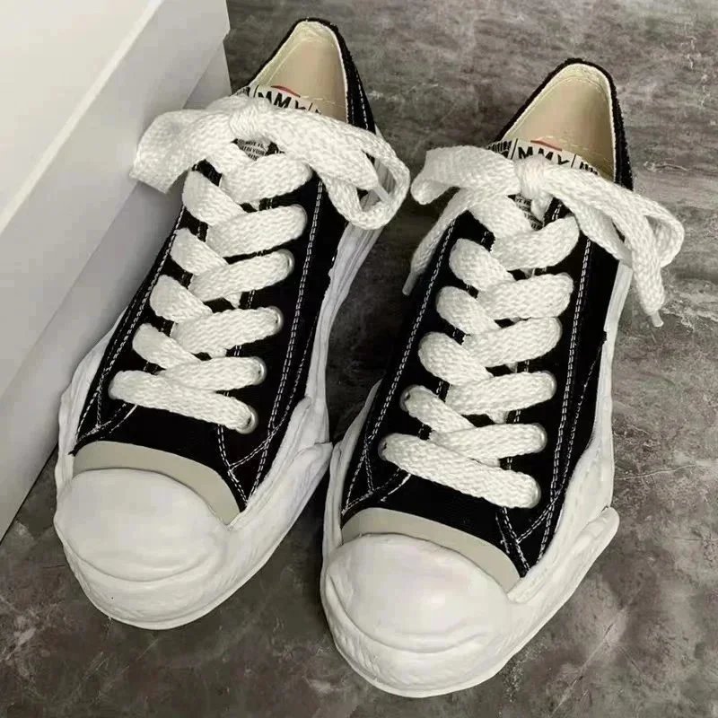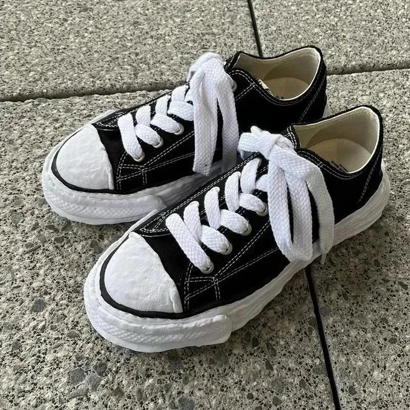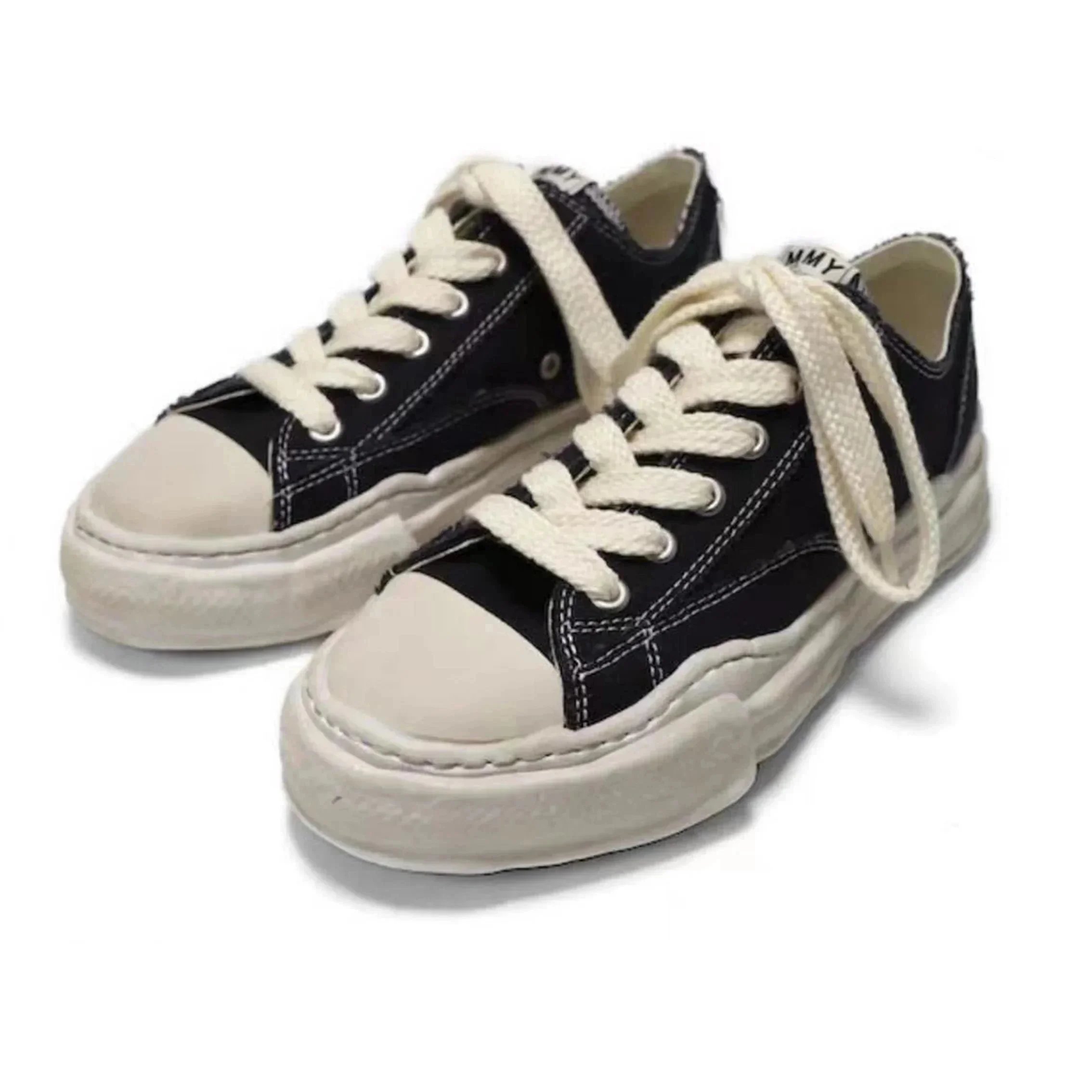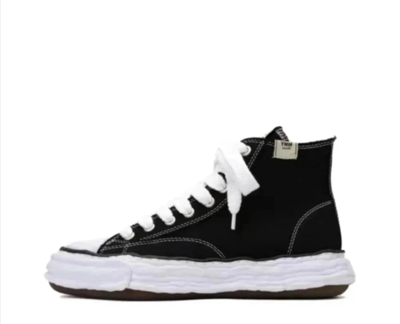 Stylish black canvas sneakers featuring a unique wavy, textured sole for bold streetwear looks and all-day comfort.