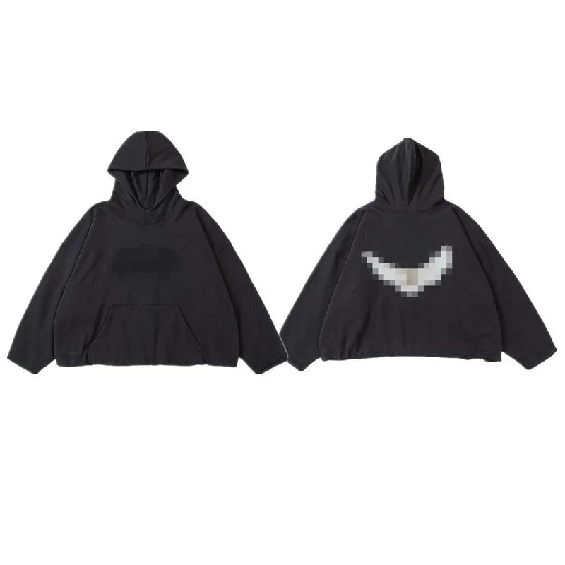 Stylish black hoodie featuring a bold white wing graphic on the back. Perfect for casual wear or layering in cool weather.