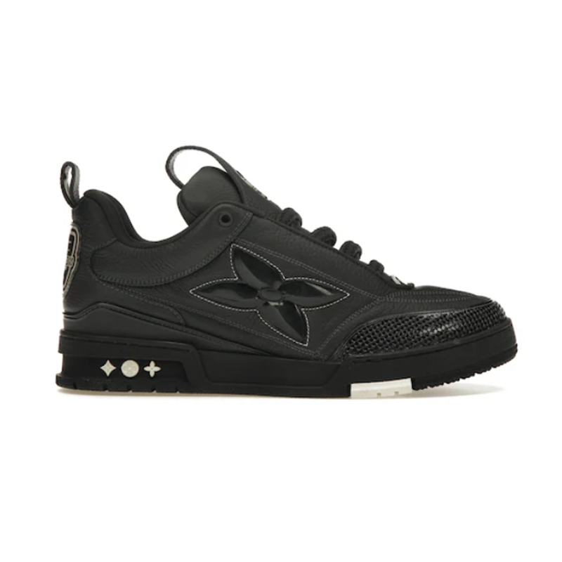 Stylish black low-top sneaker featuring a bold floral overlay, breathable mesh toe box, and sleek monochrome finish for everyday wear.