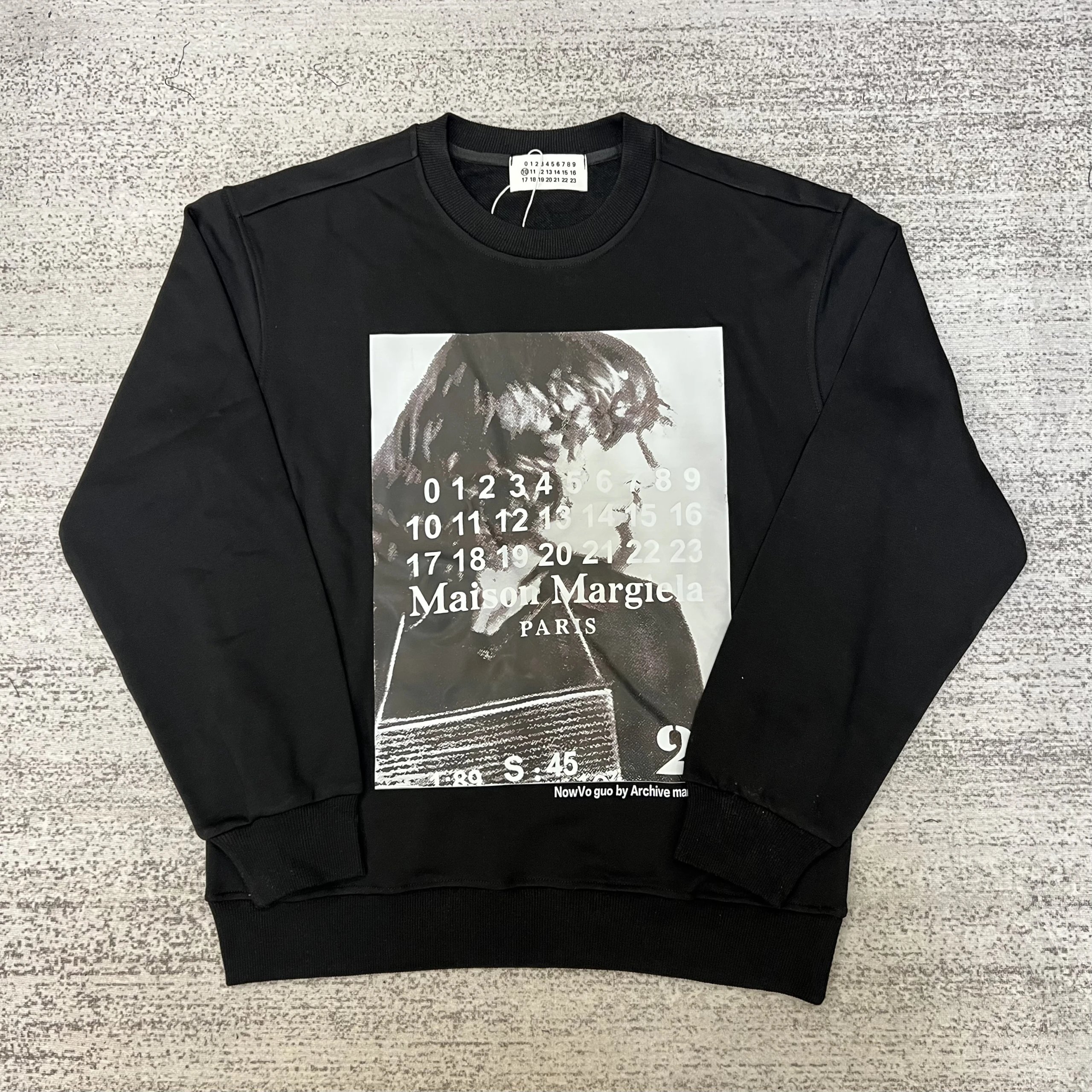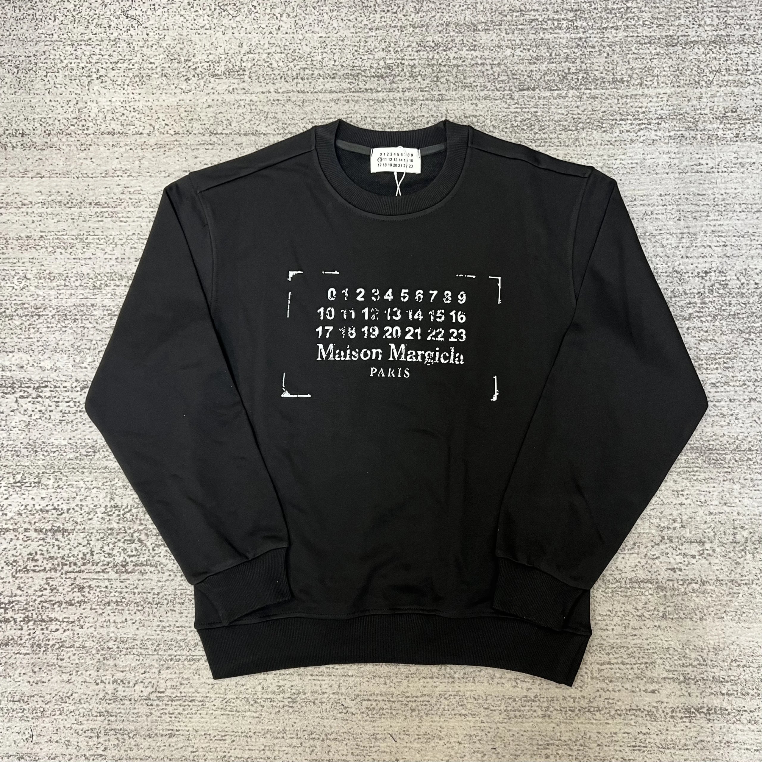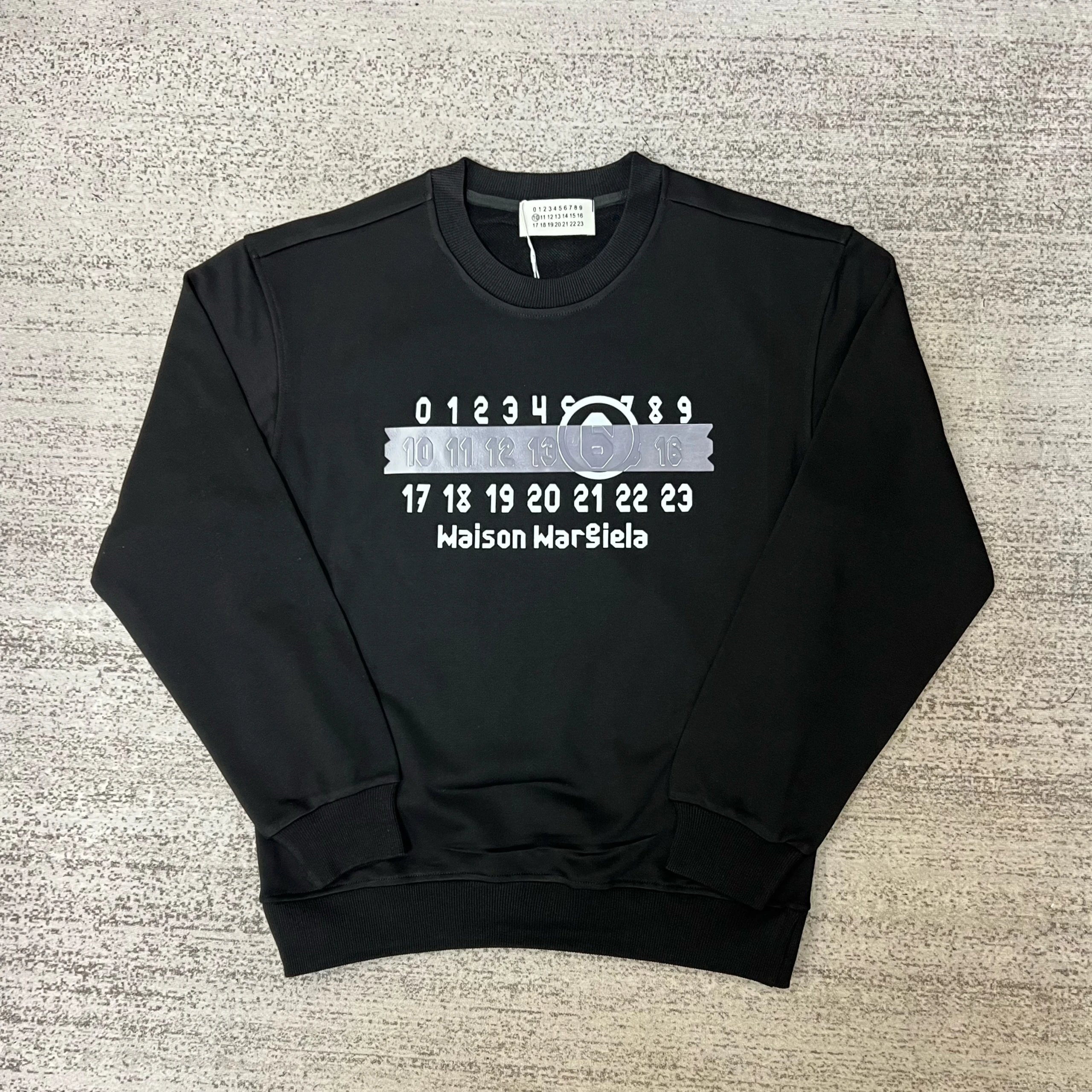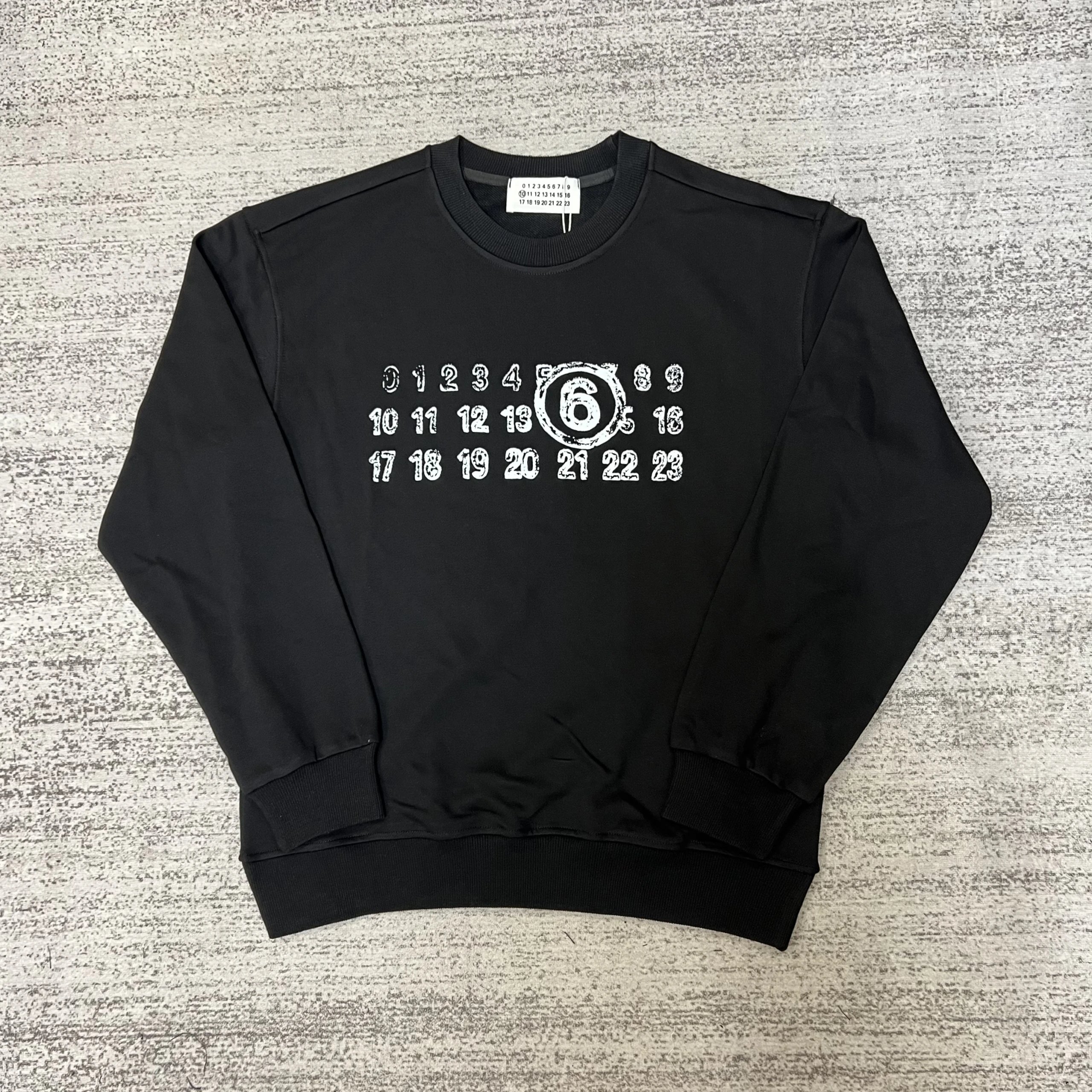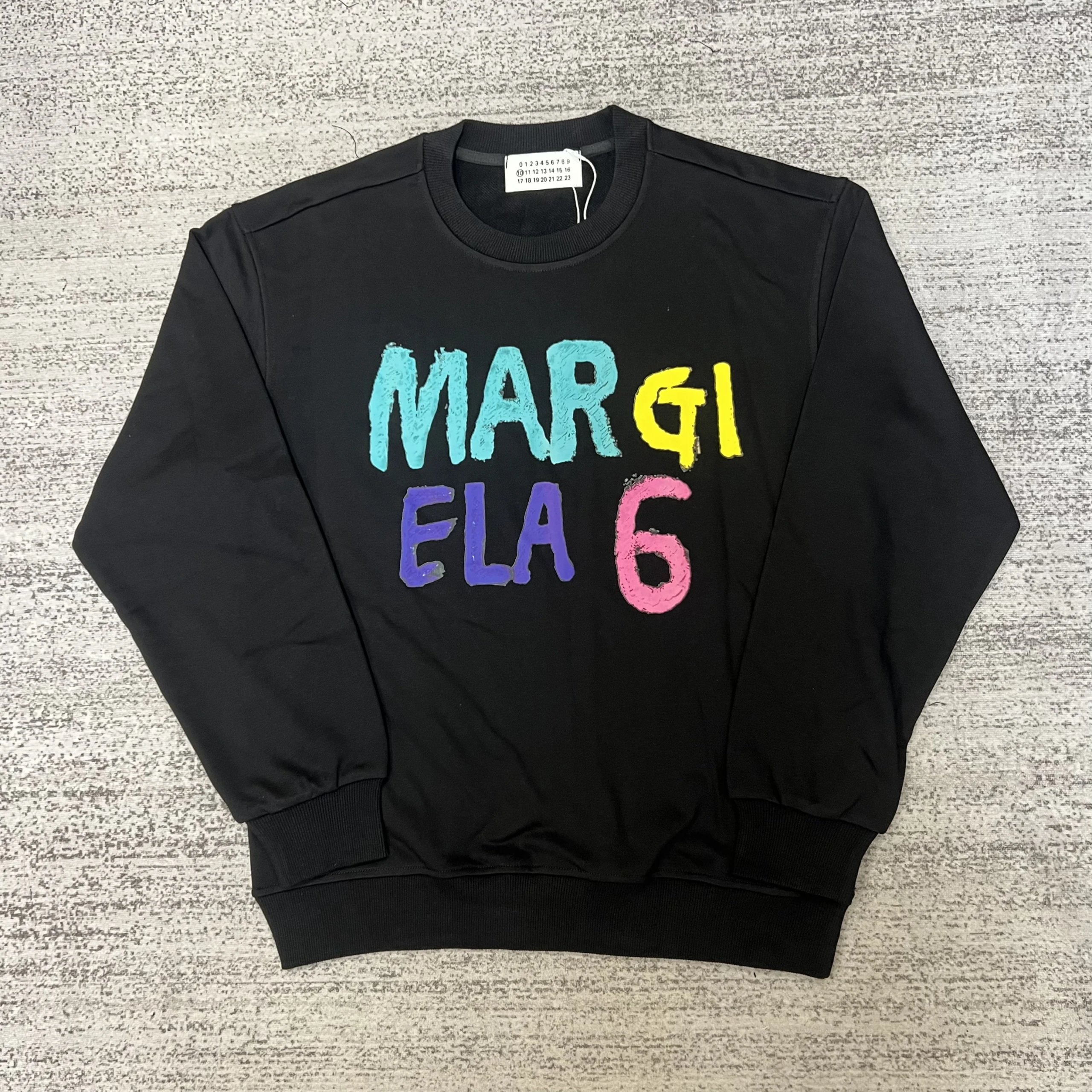 Stylish black sweatshirt featuring a vibrant rainbow heart design with bold white numbers. Perfect for casual and streetwear looks.