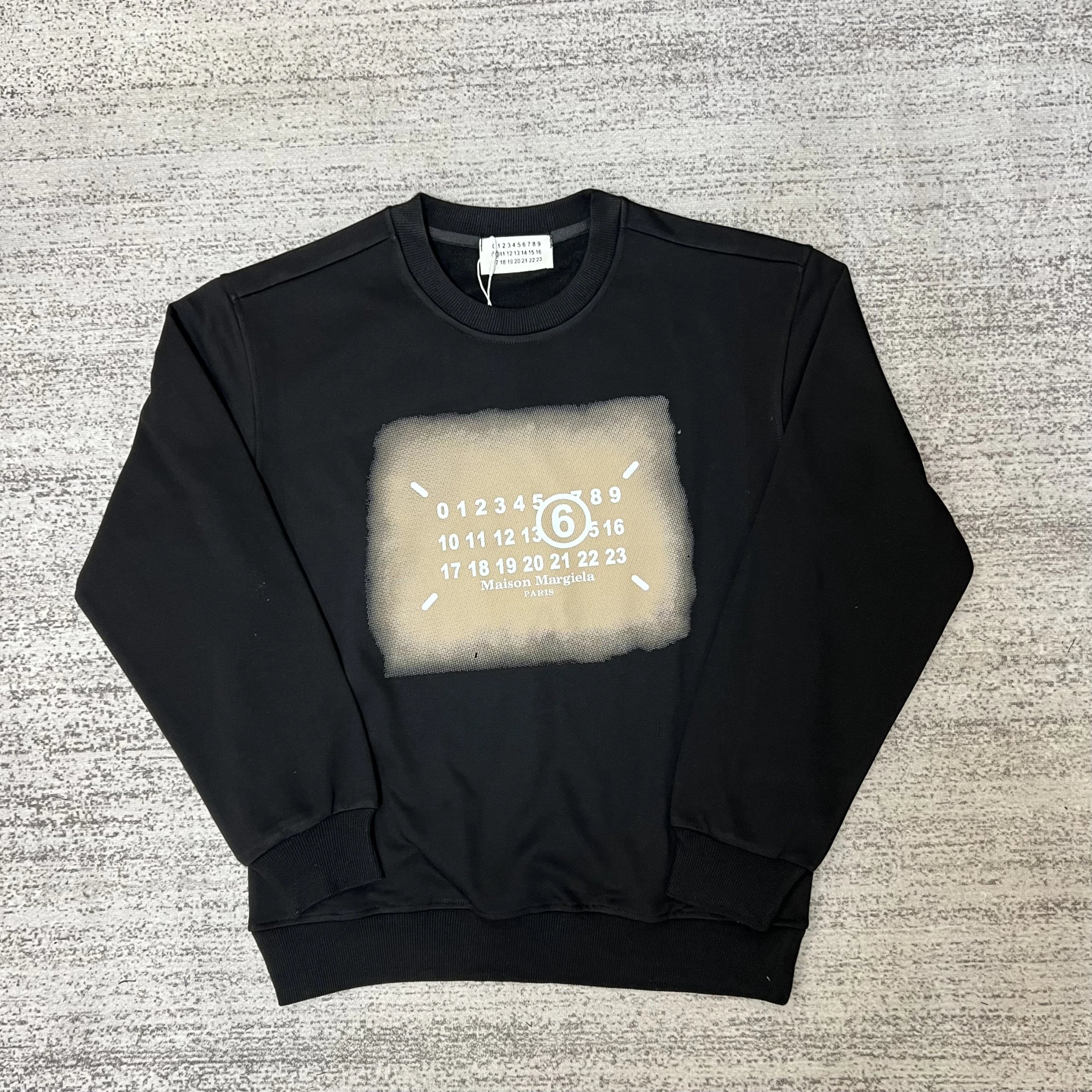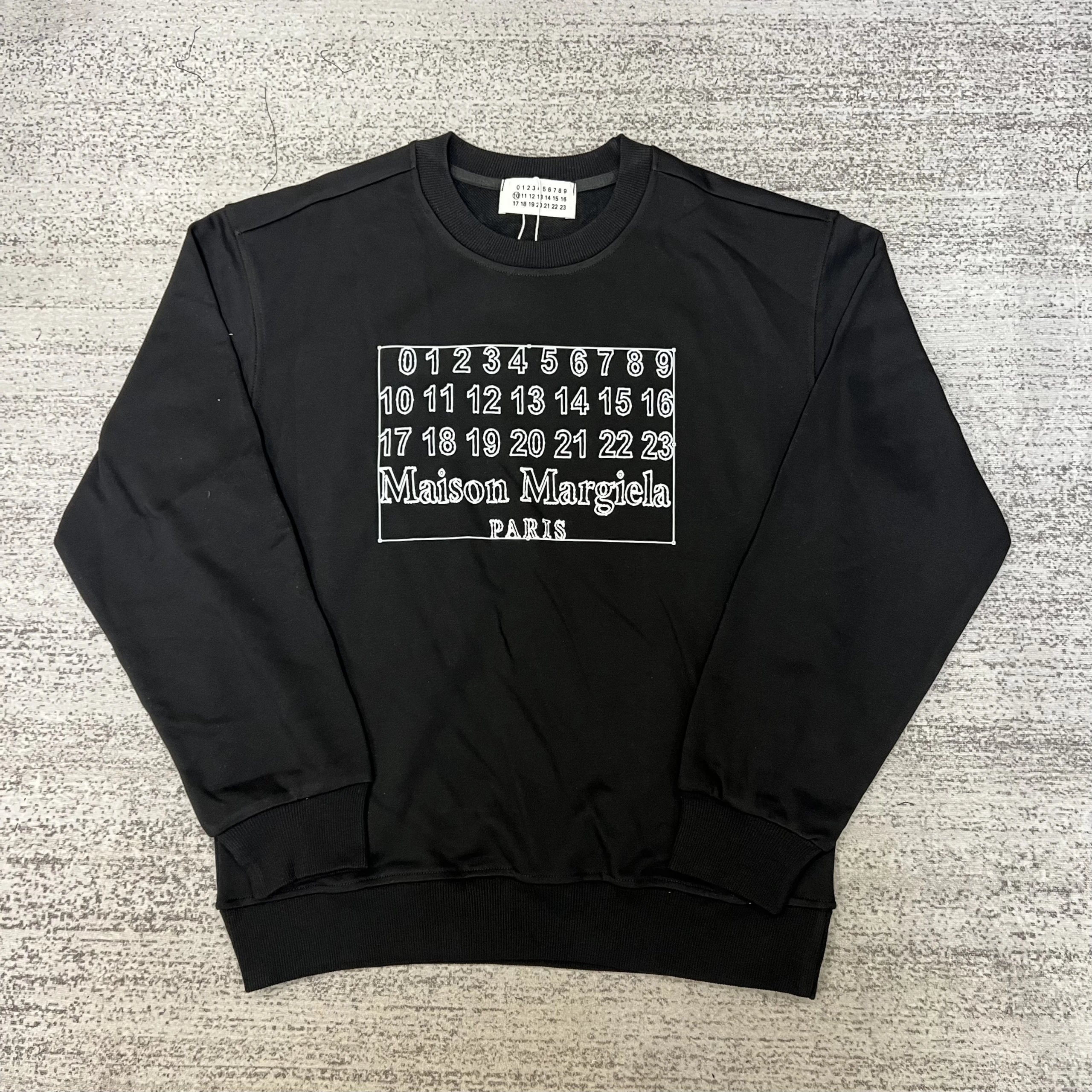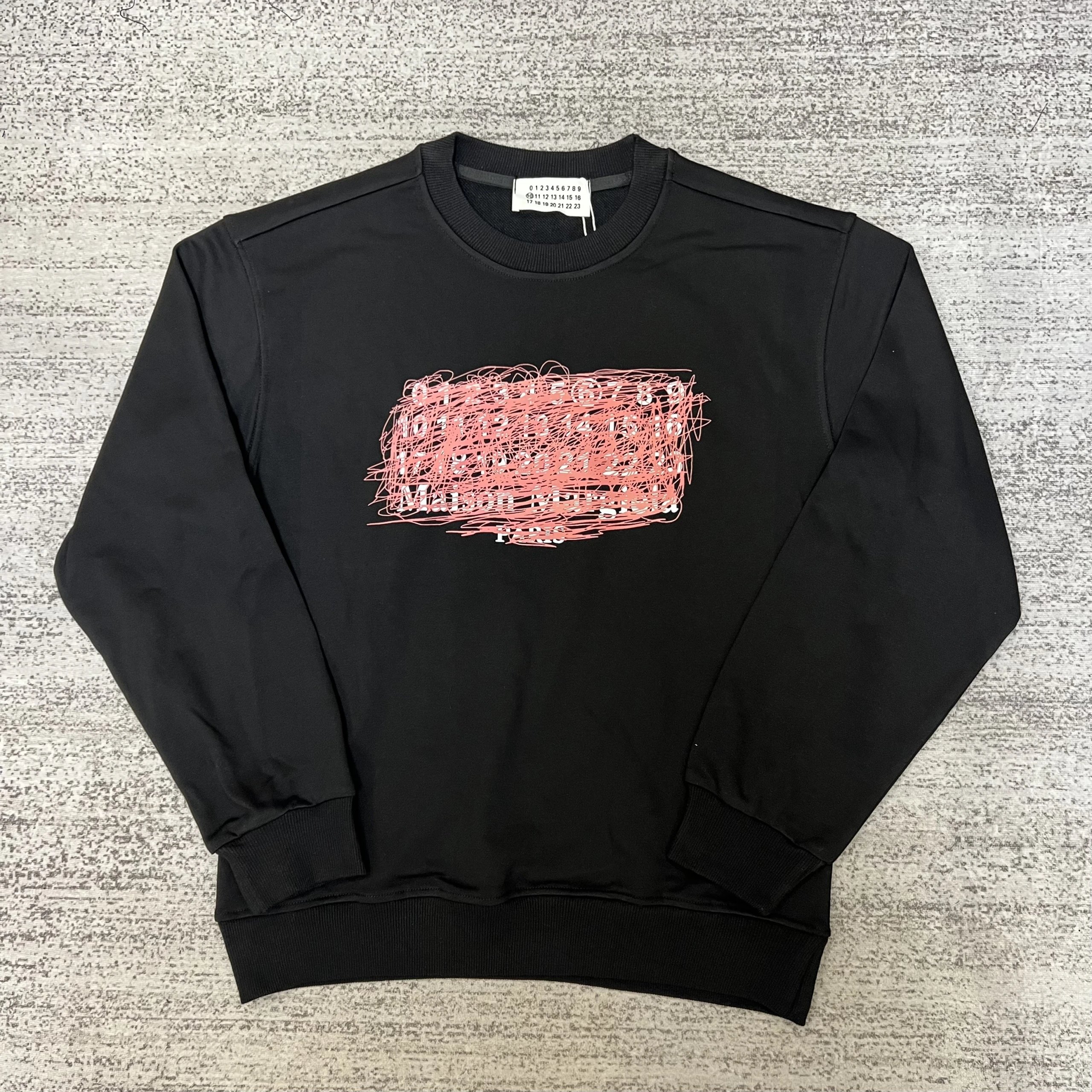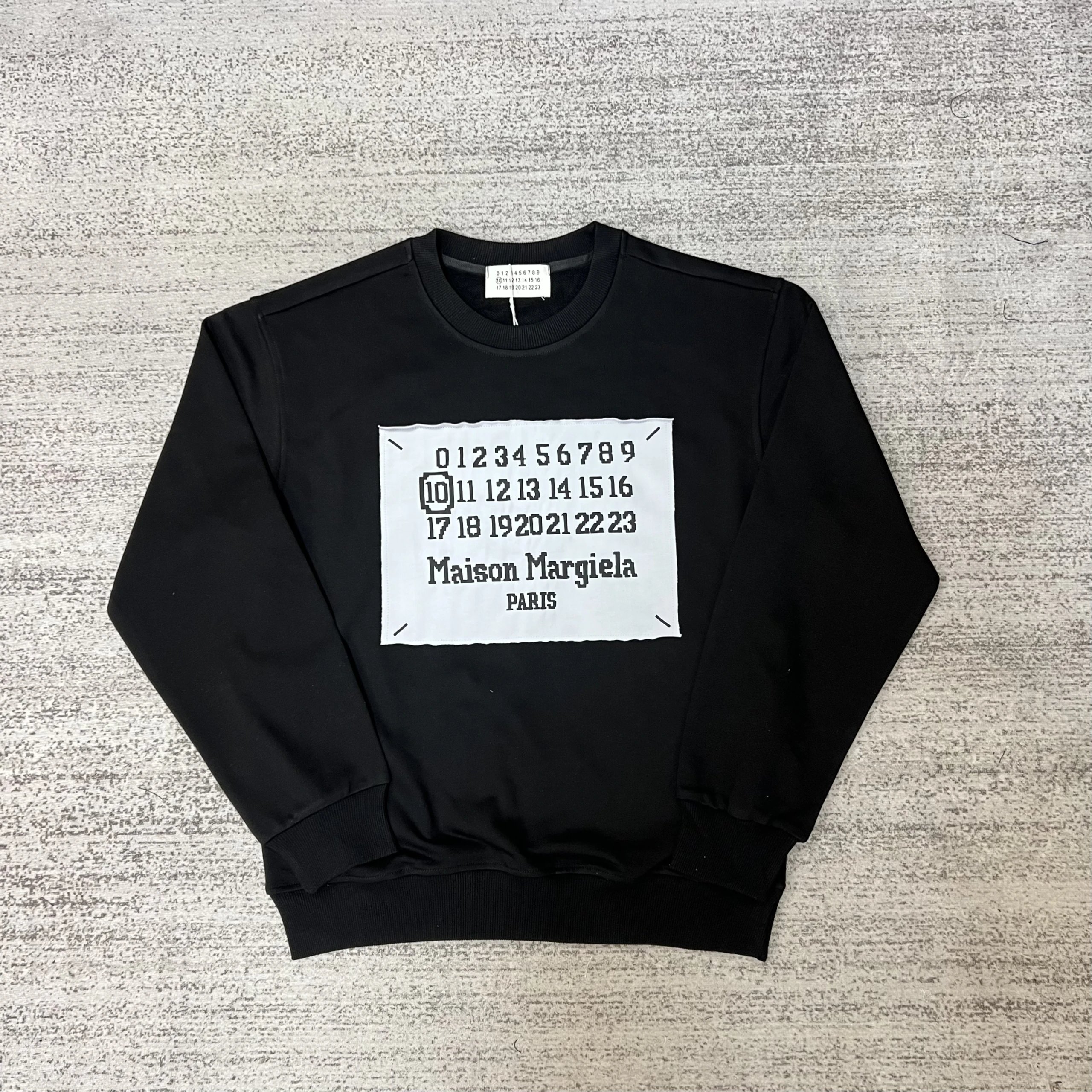 Stylish black sweatshirt featuring a vibrant rainbow heart design with bold white numbers. Perfect for casual and streetwear looks.